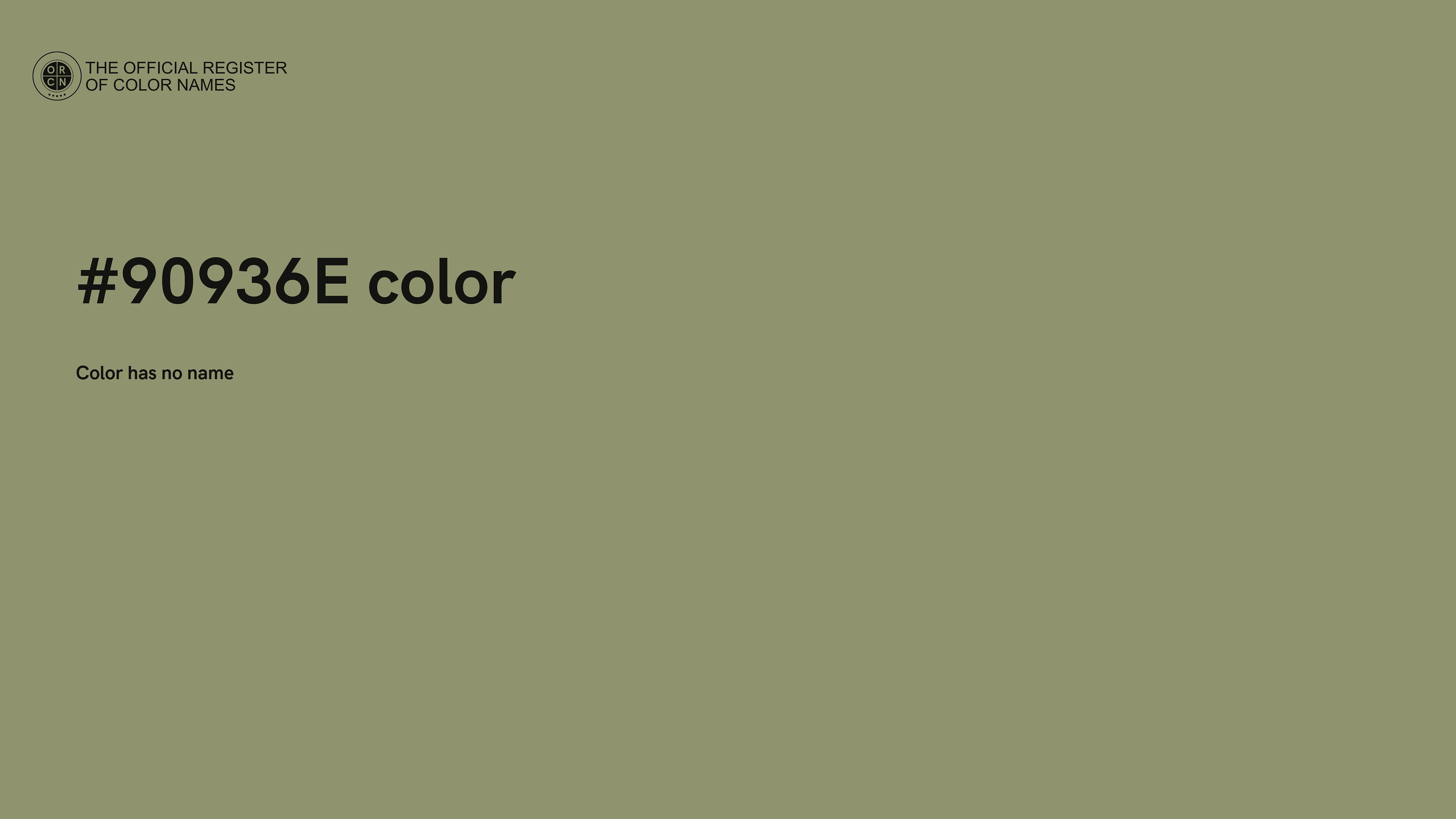 The digital color HEX #90936E belongs to the Yellow Color Family featuring Low Saturation (Saturation Family) and Light (Brightness Family).