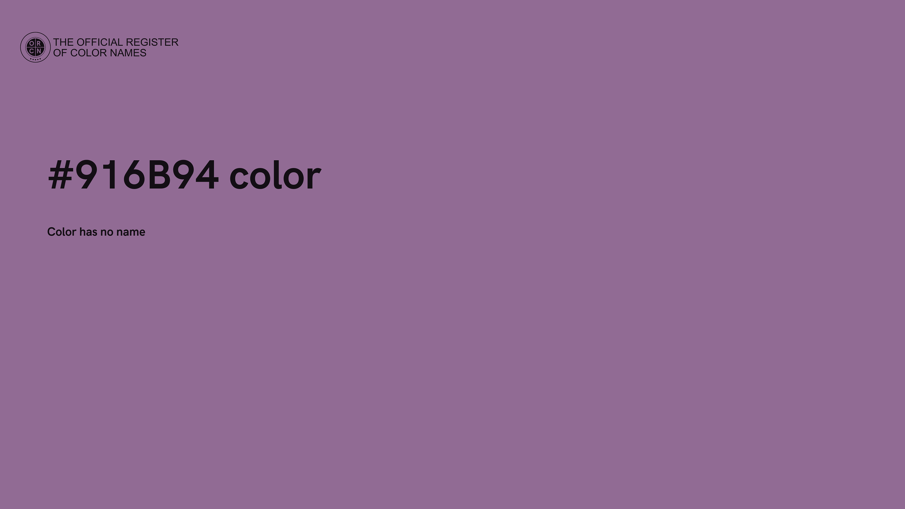 For printing in non digital world, #916B94 is represented in CMYK as 1 Cyan, 16 Magenta, 0 Yellow, and 42 Black (Key) (C:1 M:16 Y:0 K:42).