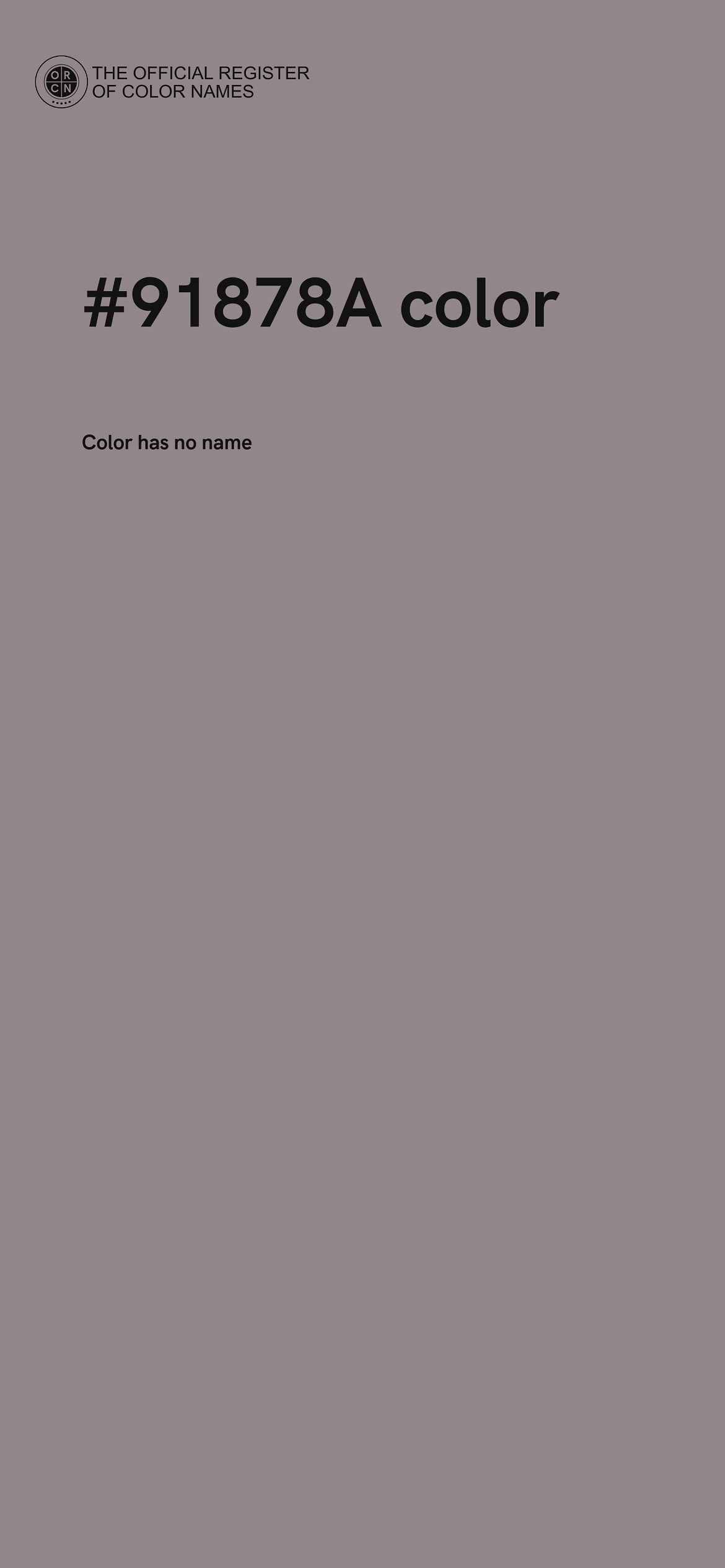 The digital color HEX #91878A belongs to the Rose Color Family featuring Desaturated (Saturation Family) and Light (Brightness Family).