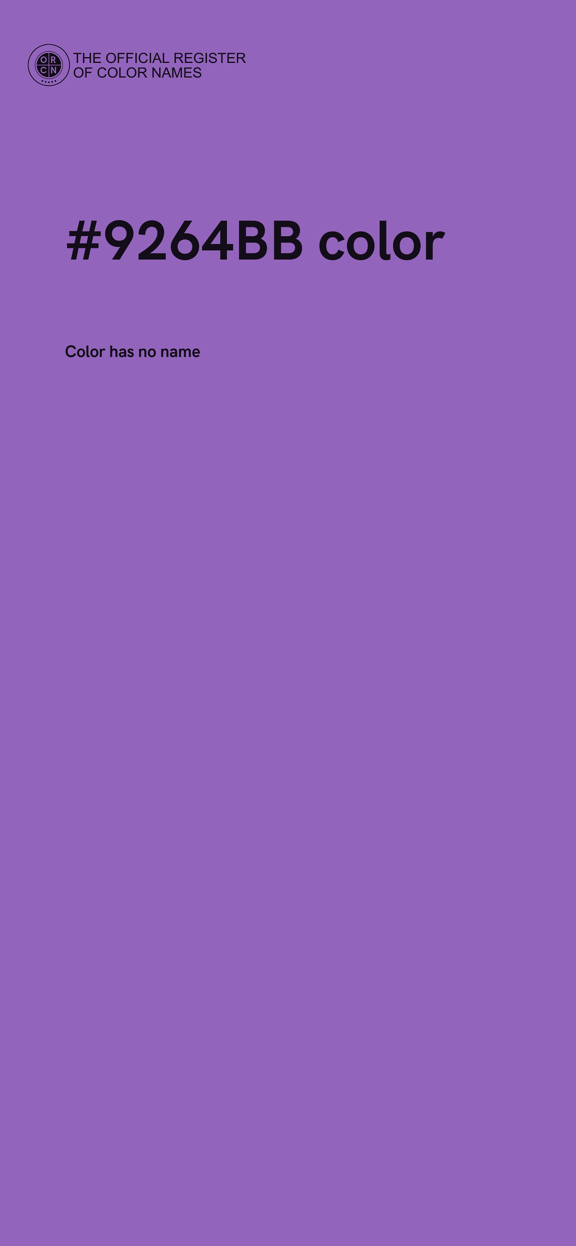 The digital color HEX #9264BB belongs to the Violet Color Family featuring Mild Saturation (Saturation Family) and Light (Brightness Family).