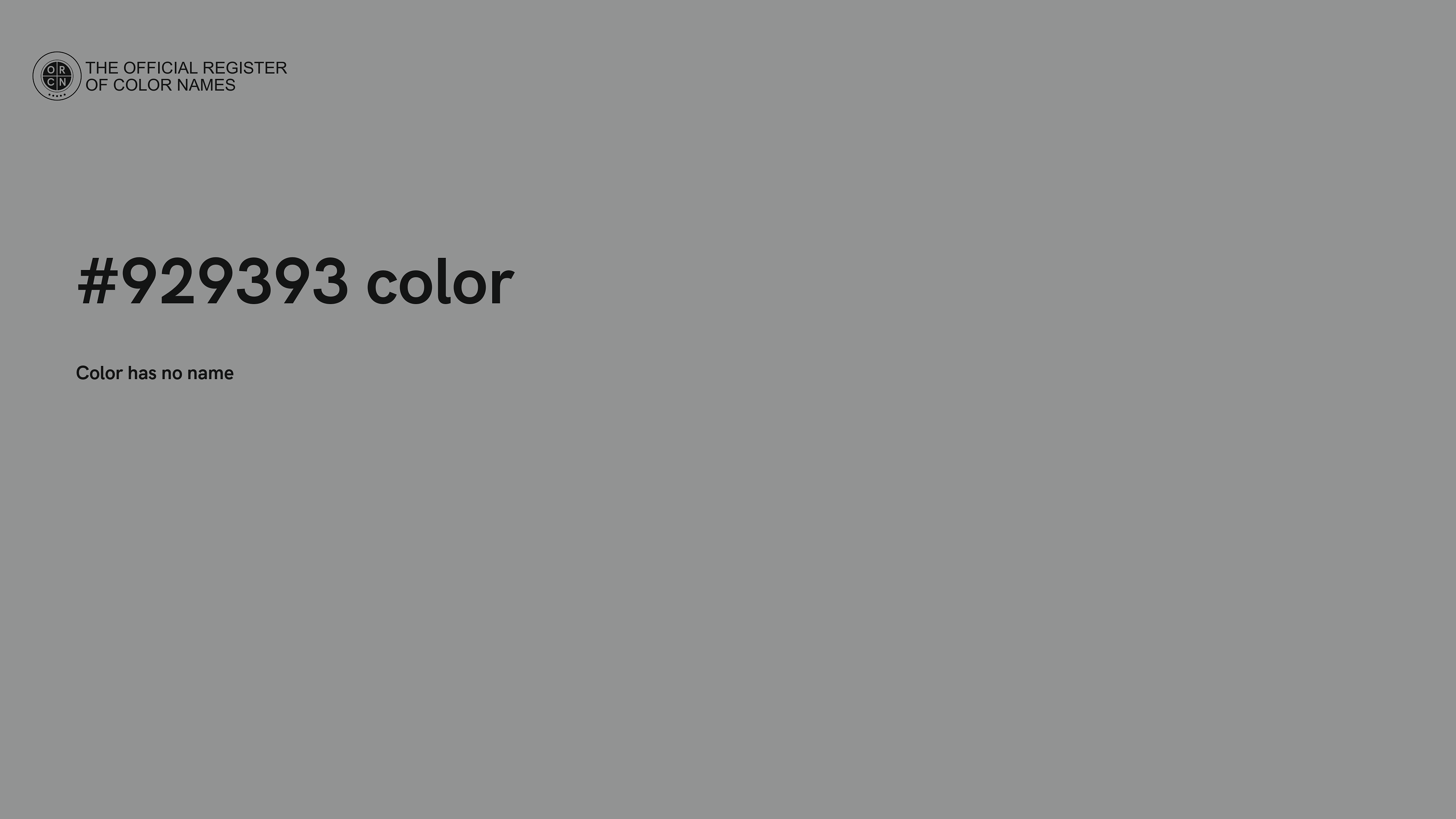 For printing in non digital world, #929393 is represented in CMYK as 0 Cyan, 0 Magenta, 0 Yellow, and 42 Black (Key) (C:0 M:0 Y:0 K:42).