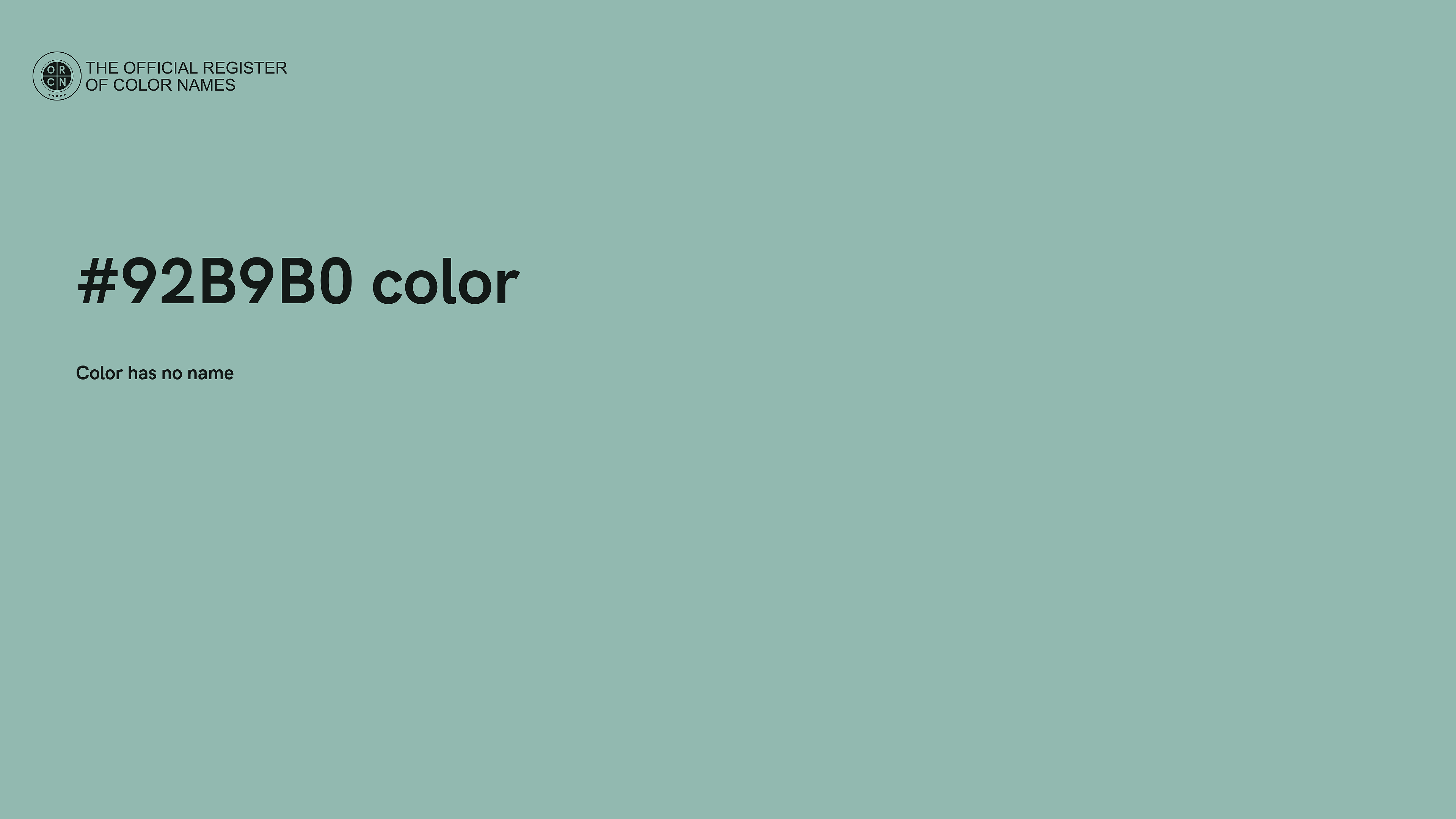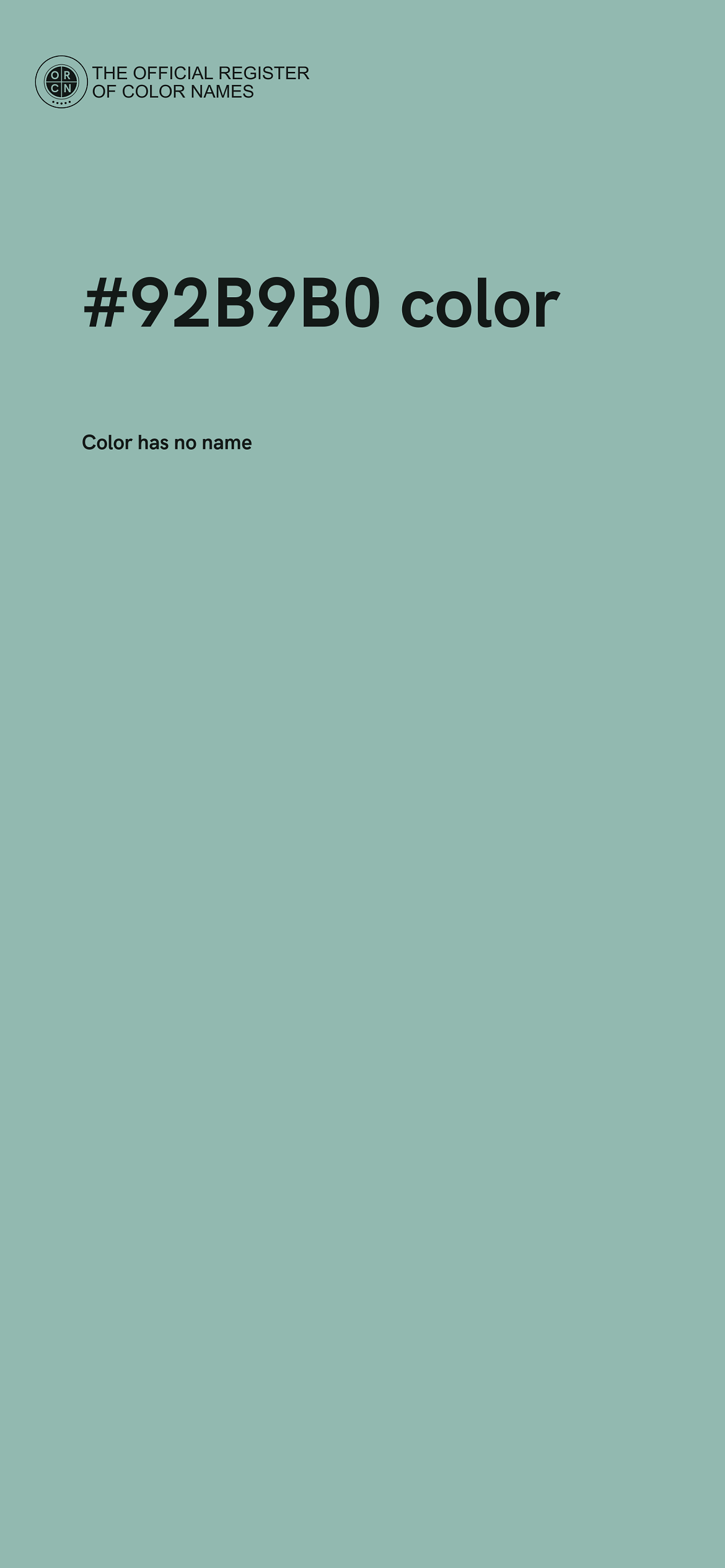 The digital color HEX #92B9B0 belongs to the Cyan Color Family featuring Low Saturation (Saturation Family) and Very Light (Brightness Family).