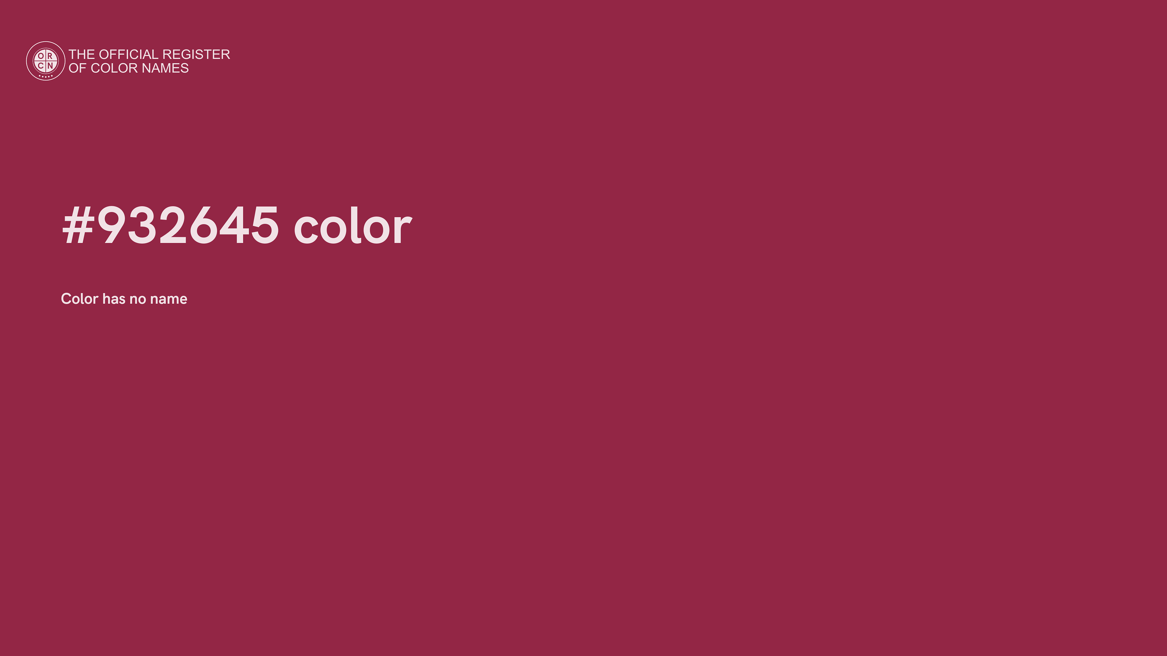The digital color HEX #932645 belongs to the Rose Color Family featuring Moderate Saturation (Saturation Family) and Neutral (Brightness Family).