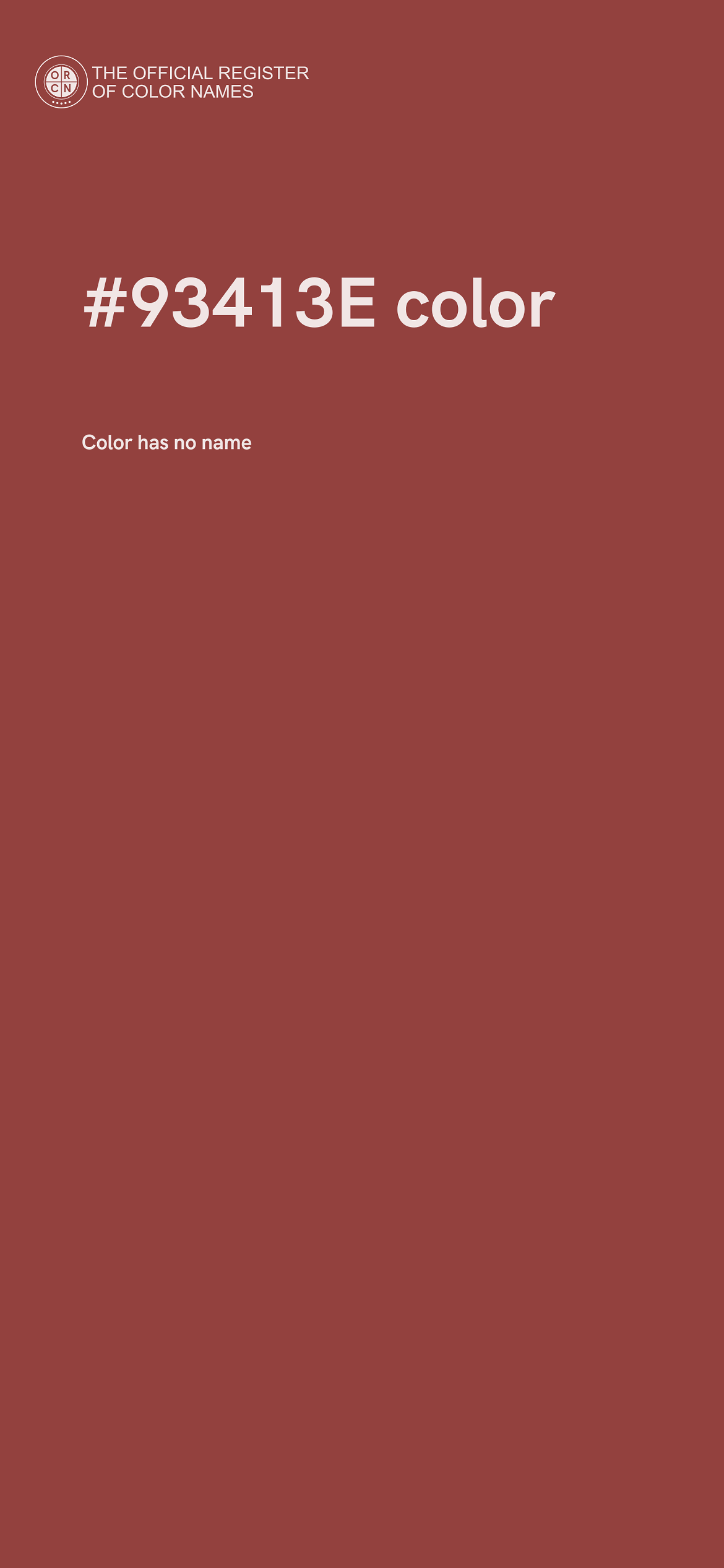 The digital color HEX #93413E belongs to the Red Color Family featuring Moderate Saturation (Saturation Family) and Light (Brightness Family).