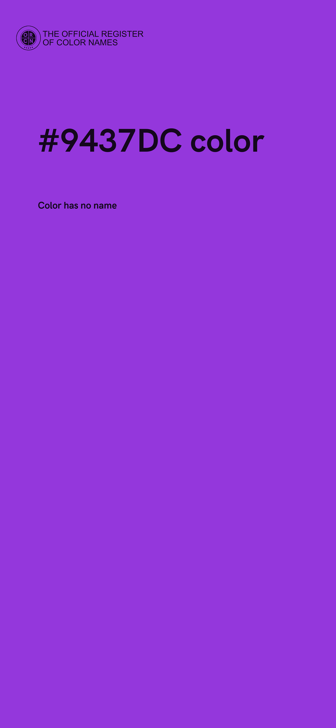 The digital color HEX #9437DC belongs to the Violet Color Family featuring High Saturation (Saturation Family) and Light (Brightness Family).