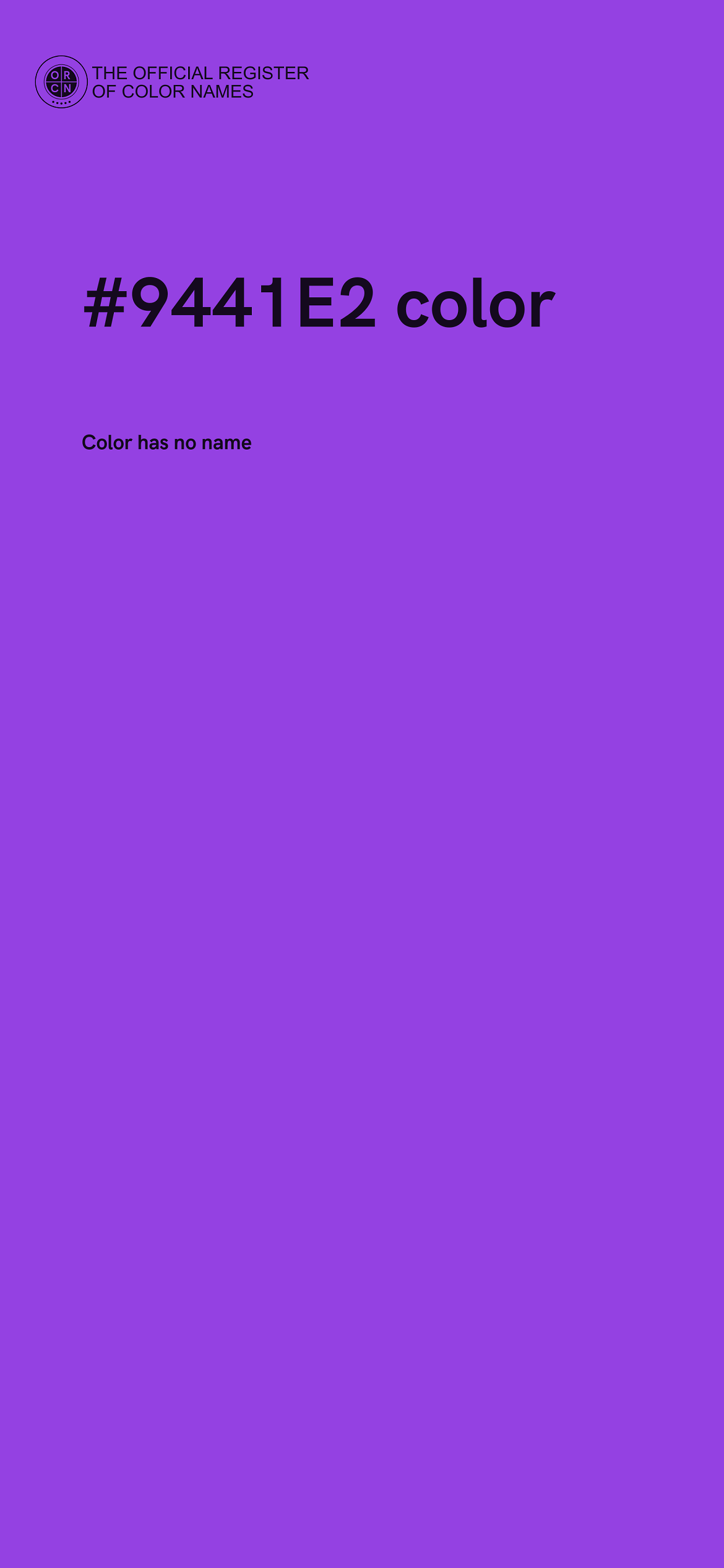 The digital color HEX #9441E2 belongs to the Violet Color Family featuring High Saturation (Saturation Family) and Light (Brightness Family).