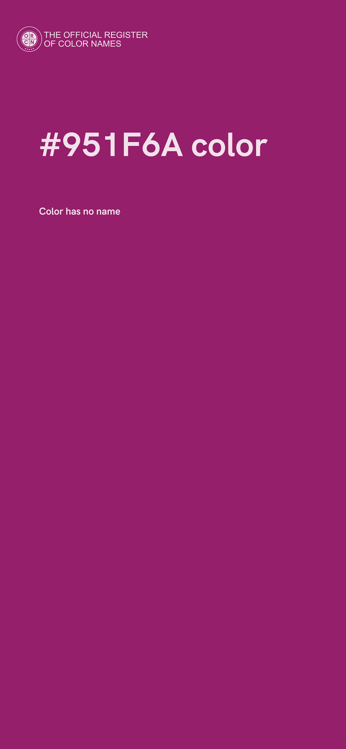 The digital color HEX #951F6A belongs to the Rose Color Family featuring High Saturation (Saturation Family) and Neutral (Brightness Family).