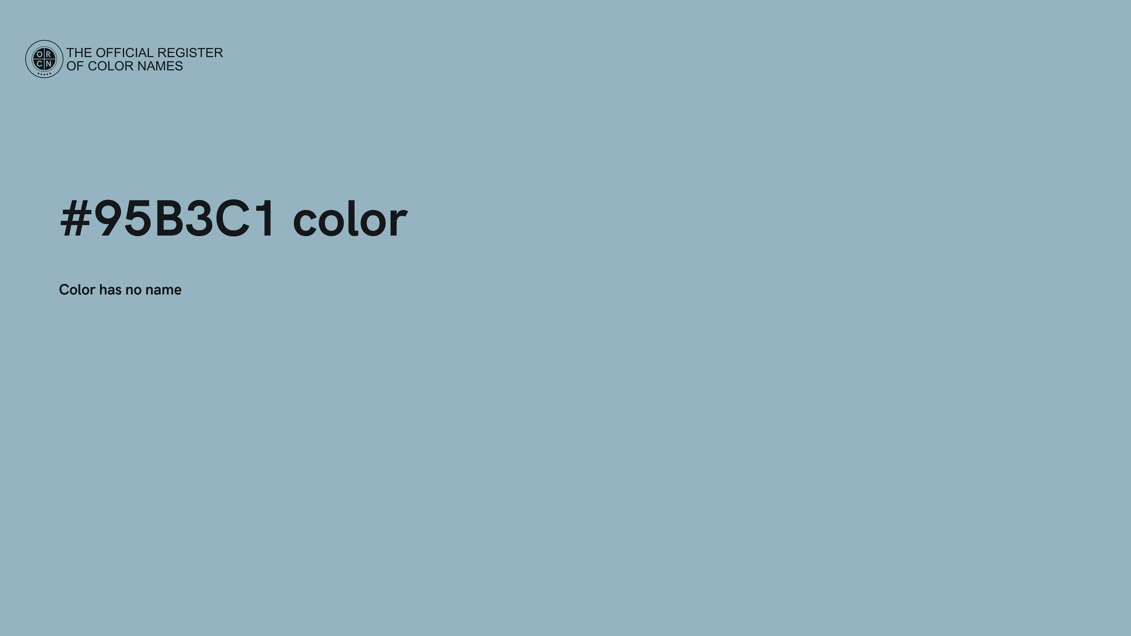 The digital color HEX #95B3C1 belongs to the Azure Color Family featuring Mild Saturation (Saturation Family) and Very Light (Brightness Family).