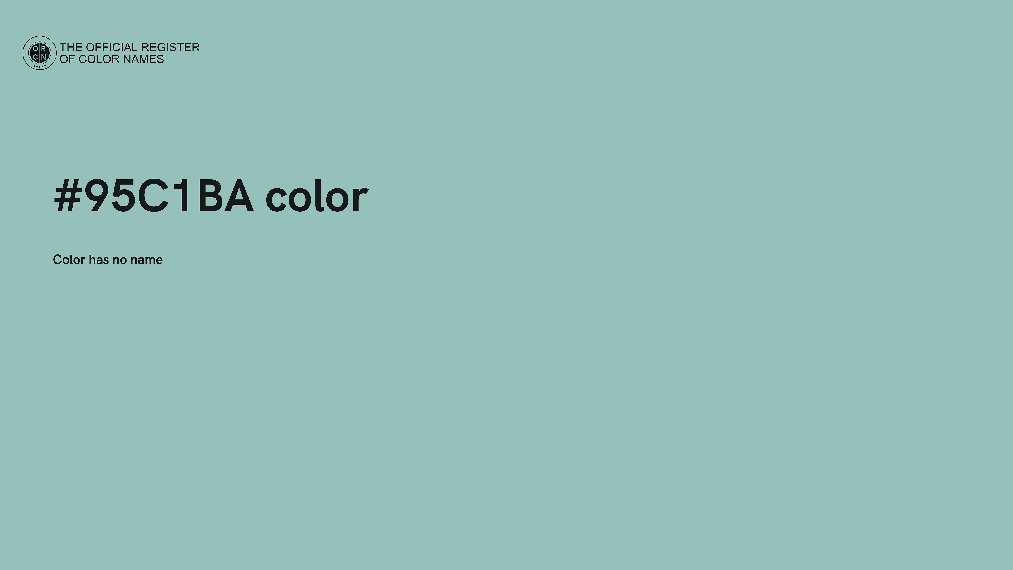 The digital color HEX #95C1BA belongs to the Cyan Color Family featuring Mild Saturation (Saturation Family) and Very Light (Brightness Family).