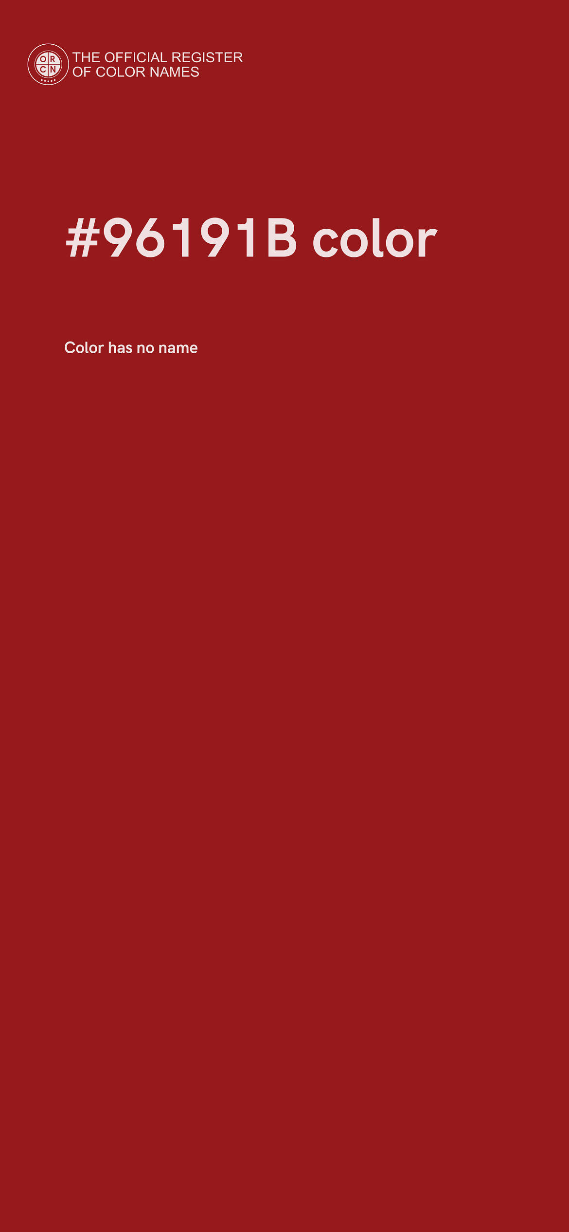 The digital color HEX #96191B belongs to the Red Color Family featuring High Saturation (Saturation Family) and Neutral (Brightness Family).