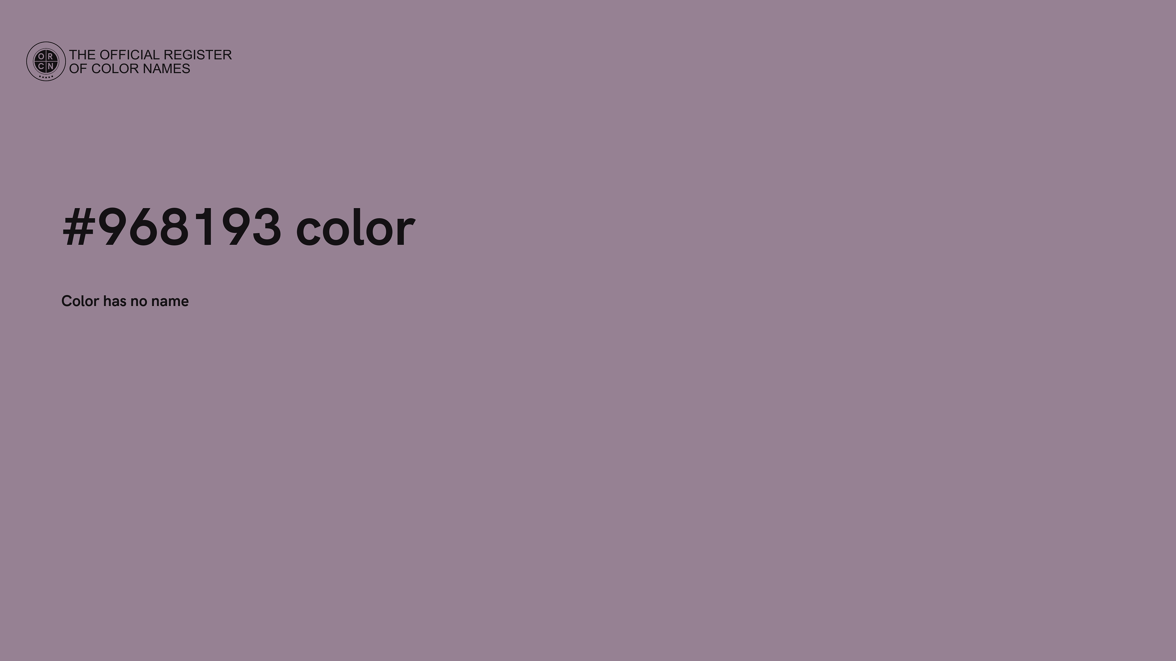 The digital color HEX #968193 belongs to the Magenta Color Family featuring Desaturated (Saturation Family) and Light (Brightness Family).