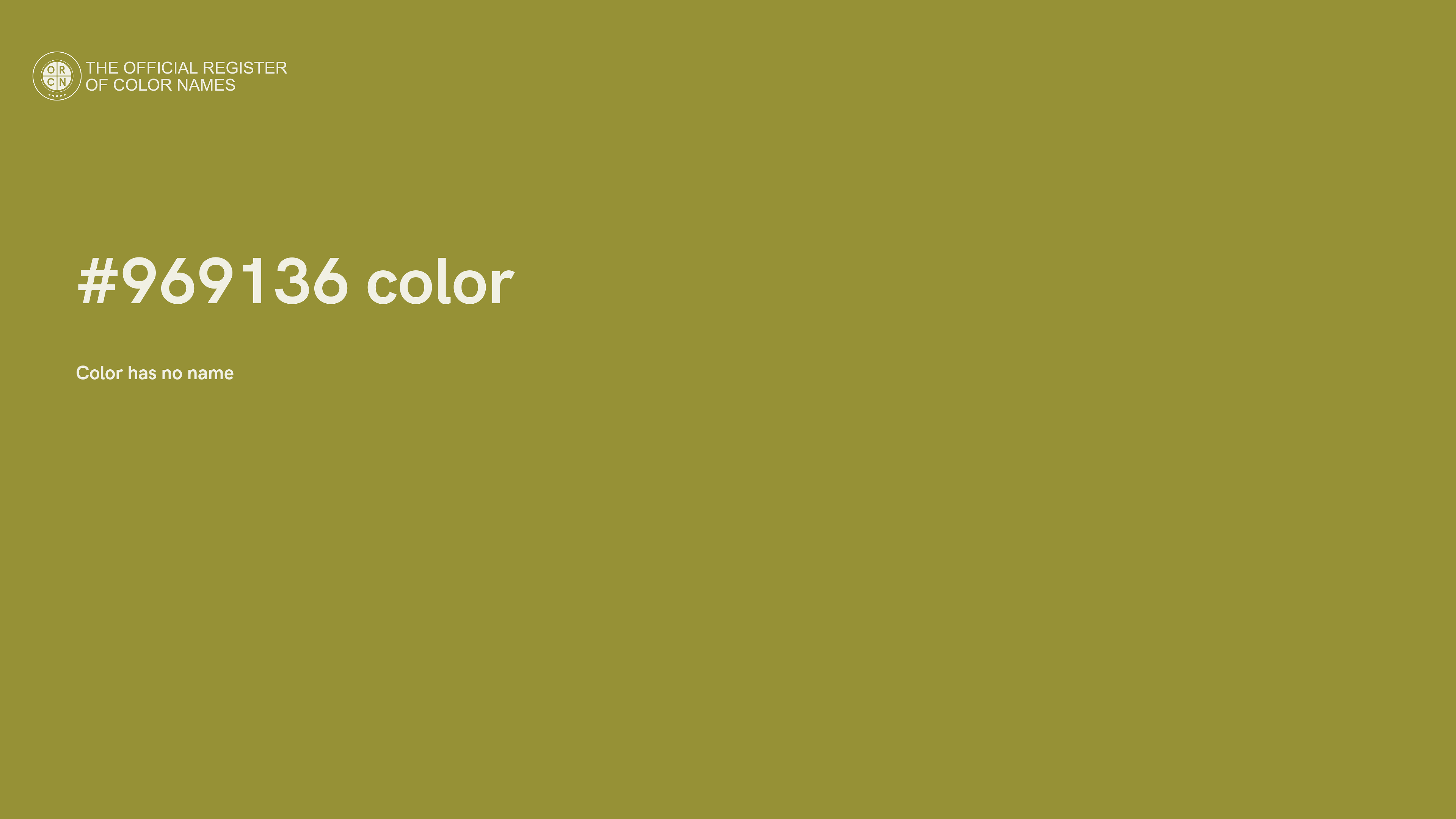 For printing in non digital world, #969136 is represented in CMYK as 0 Cyan, 2 Magenta, 38 Yellow, and 41 Black (Key) (C:0 M:2 Y:38 K:41).