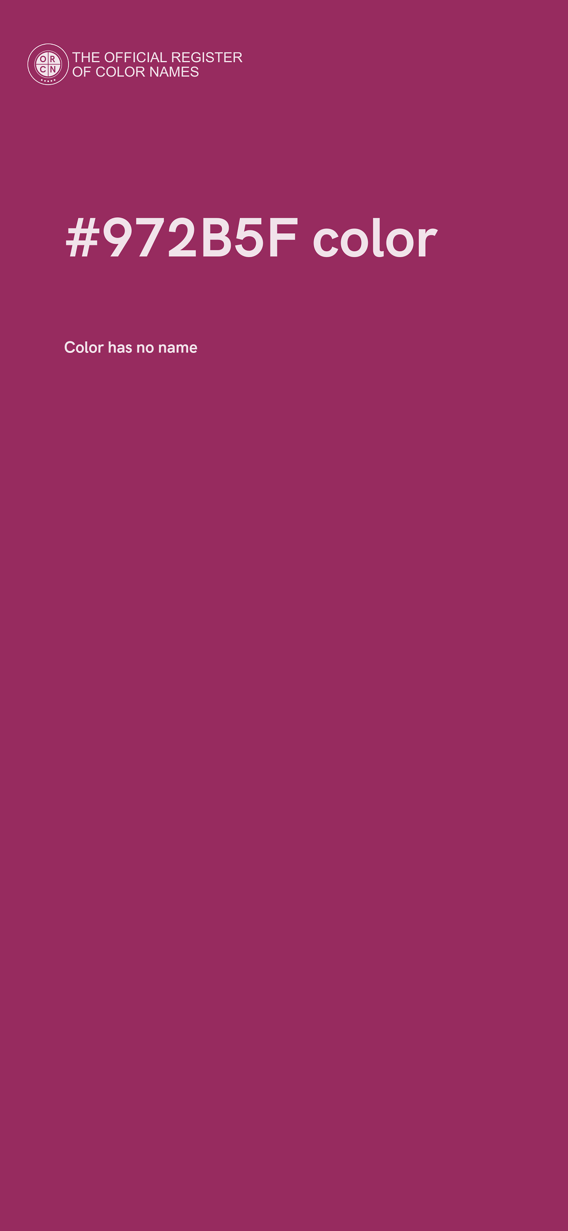 The digital color HEX #972B5F belongs to the Rose Color Family featuring Moderate Saturation (Saturation Family) and Neutral (Brightness Family).