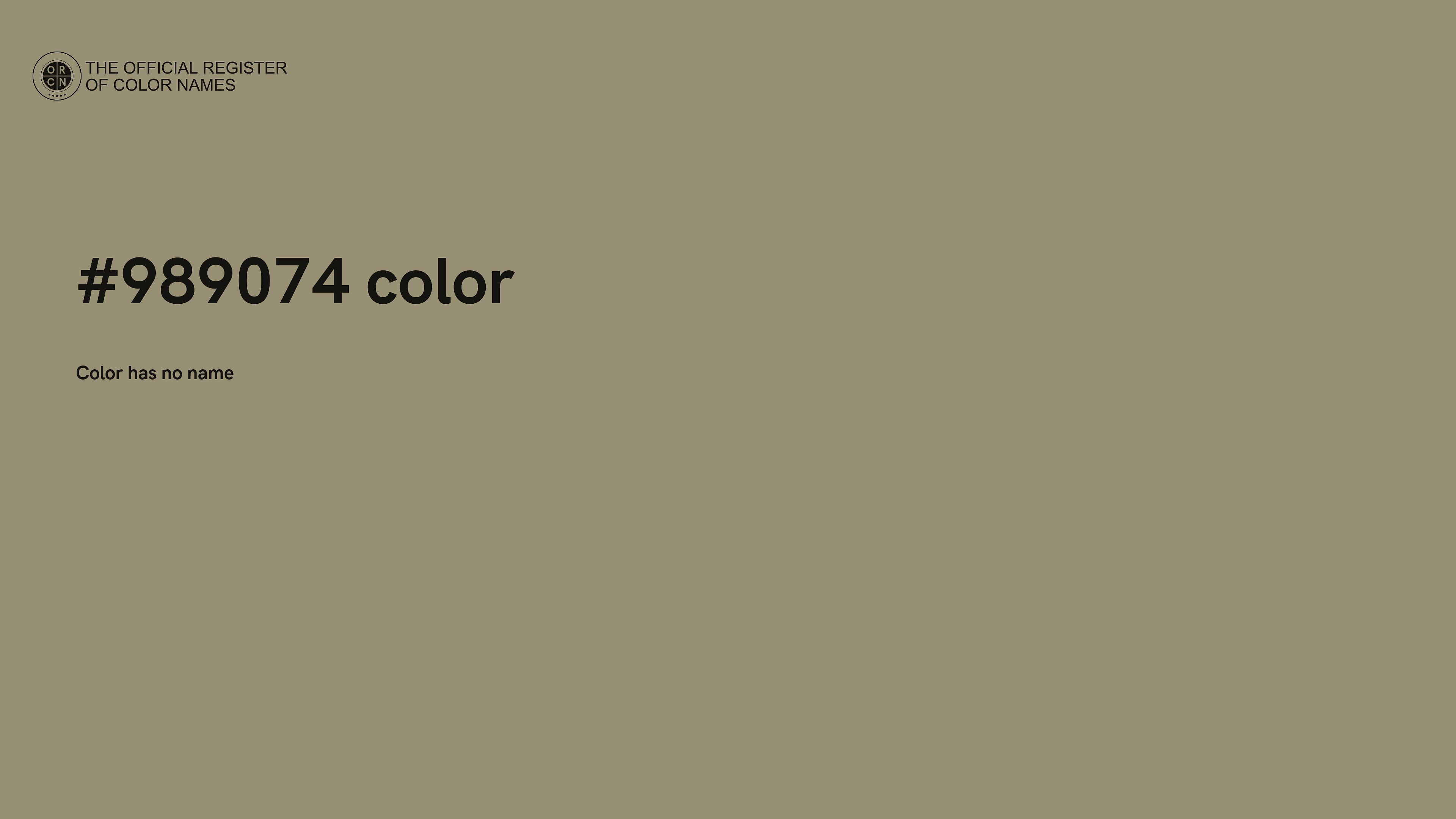 For printing in non digital world, #989074 is represented in CMYK as 0 Cyan, 3 Magenta, 14 Yellow, and 40 Black (Key) (C:0 M:3 Y:14 K:40).