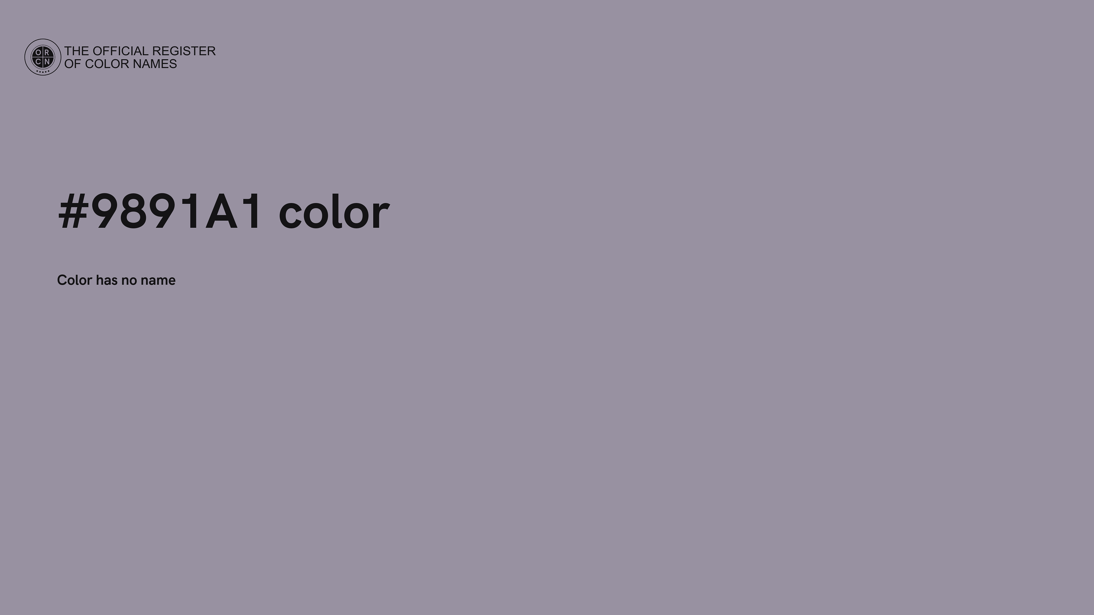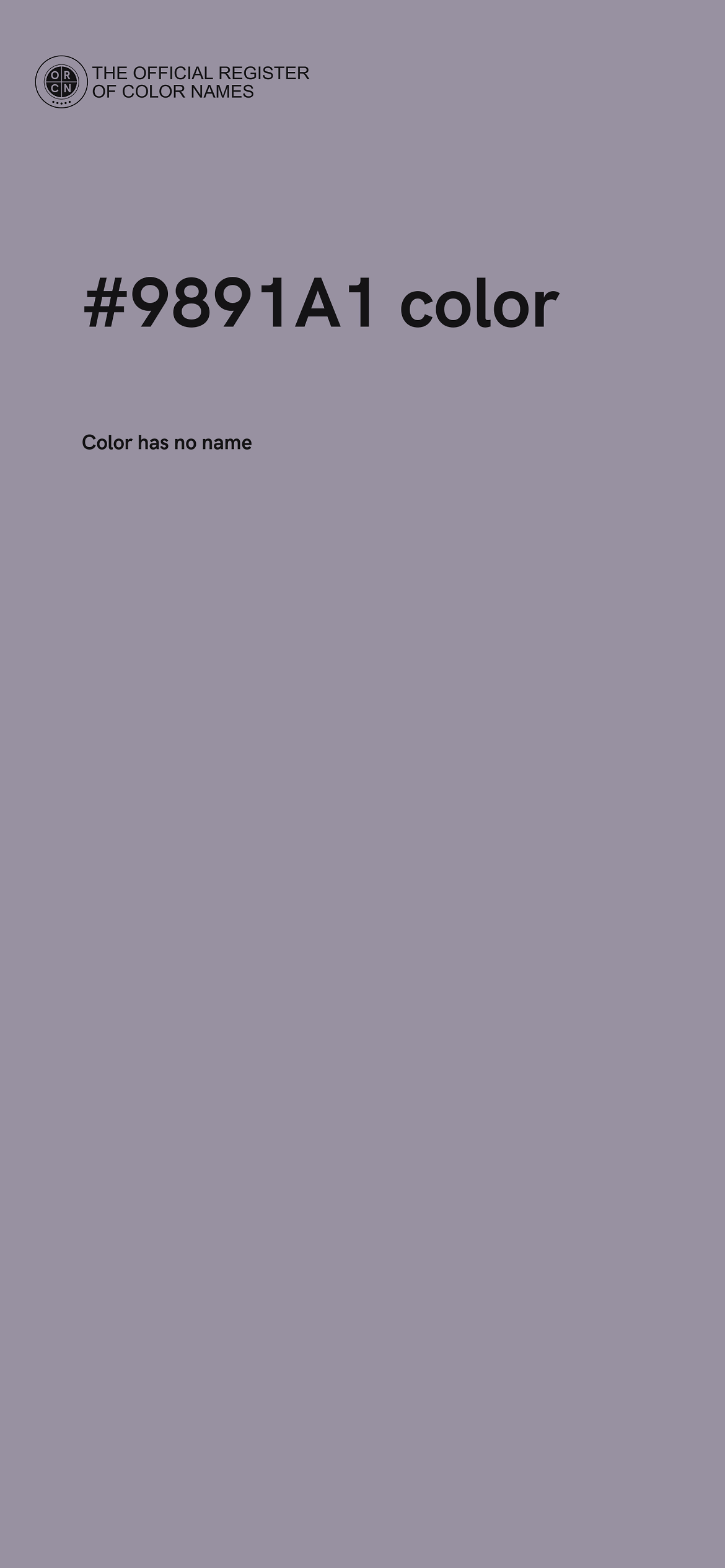 The digital color HEX #9891A1 belongs to the Violet Color Family featuring Desaturated (Saturation Family) and Very Light (Brightness Family).