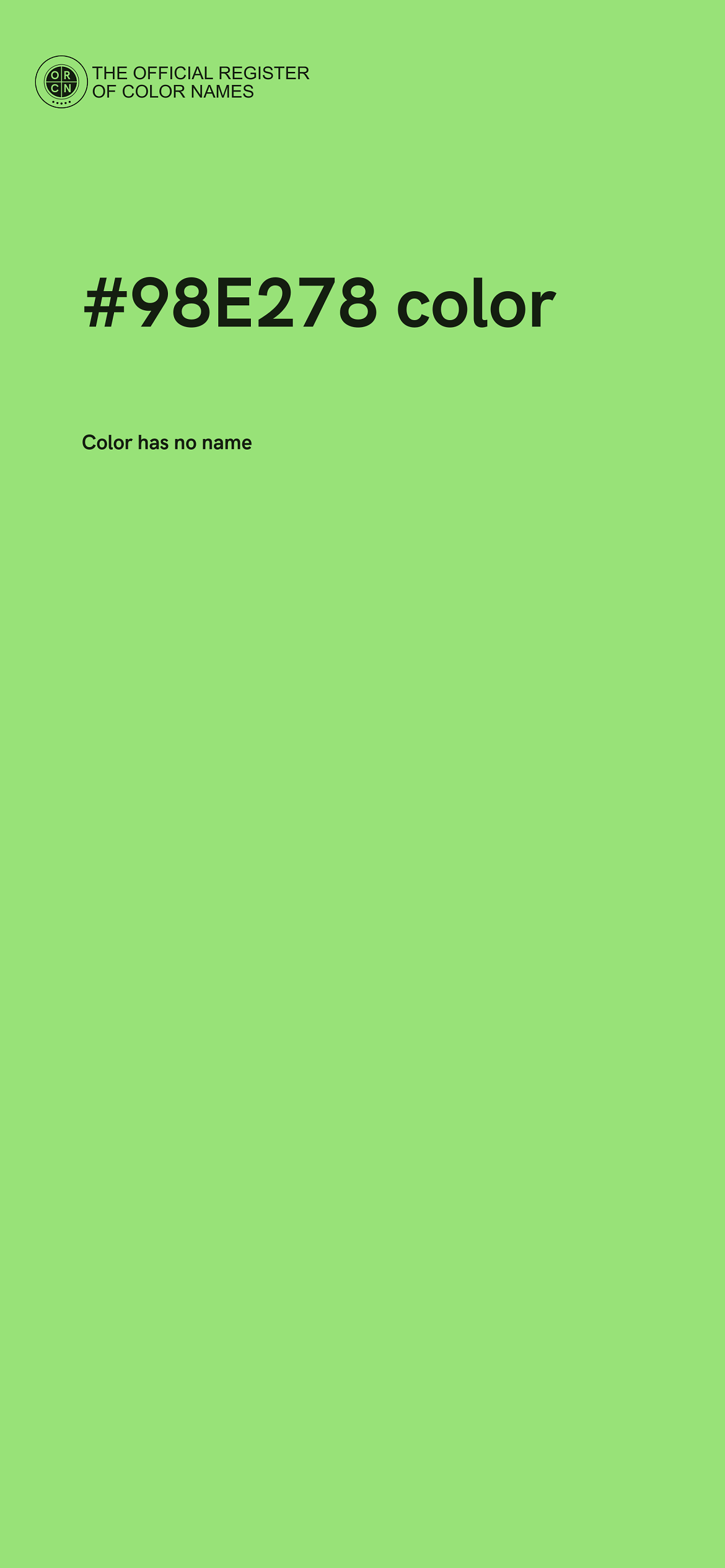 The digital color HEX #98E278 belongs to the Chartreuse Color Family featuring High Saturation (Saturation Family) and Very Light (Brightness Family).