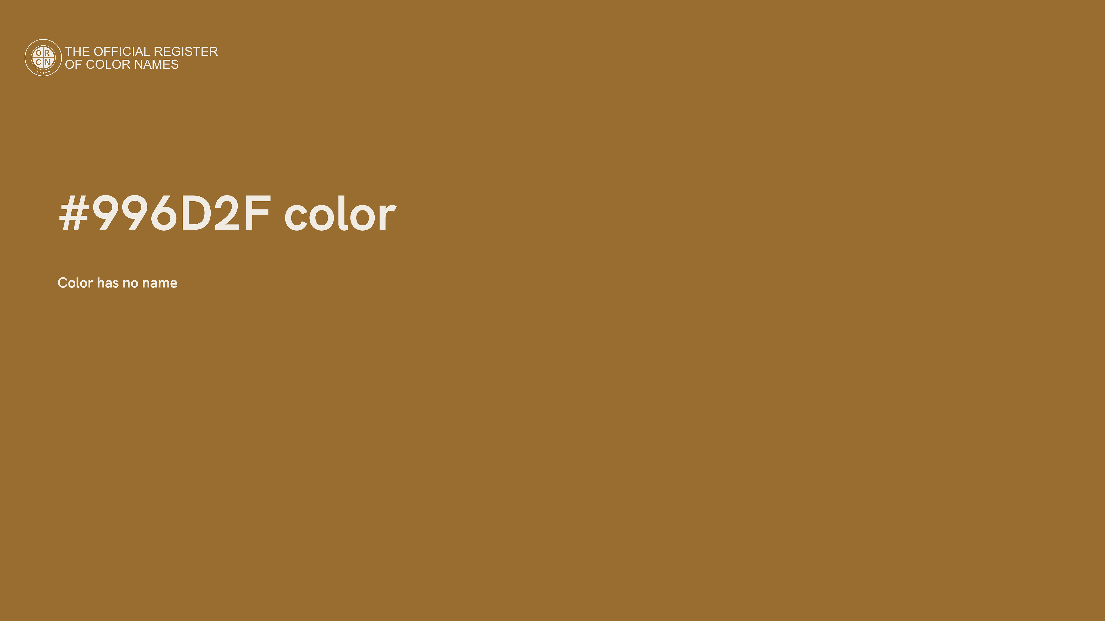 The digital color HEX #996D2F belongs to the Orange Color Family featuring Moderate Saturation (Saturation Family) and Neutral (Brightness Family).