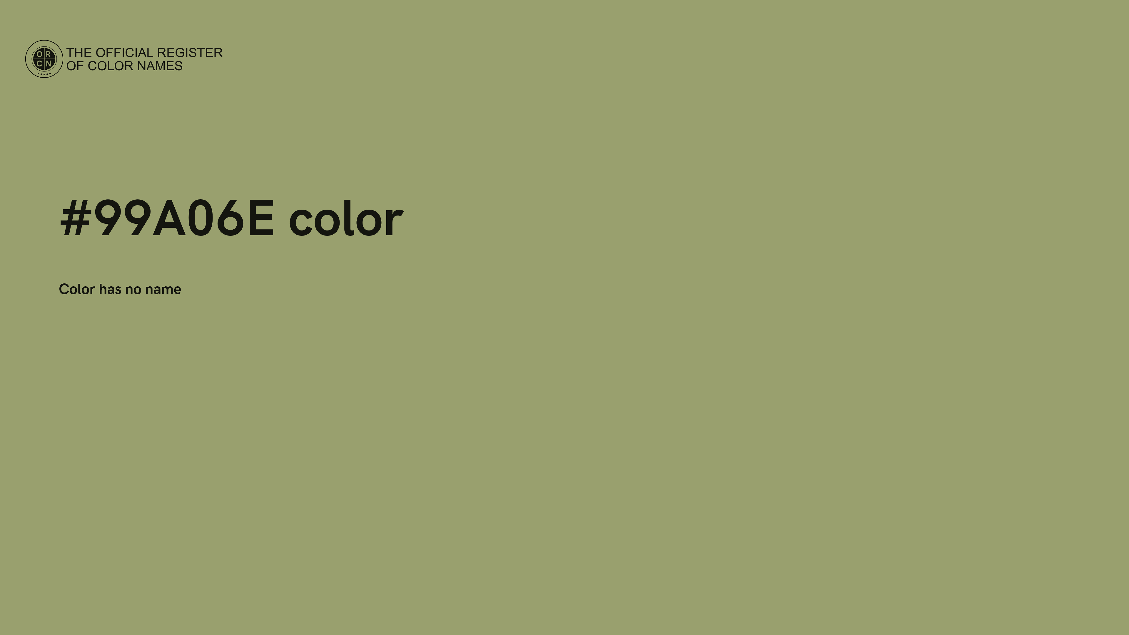 The digital color HEX #99A06E belongs to the Yellow Color Family featuring Low Saturation (Saturation Family) and Light (Brightness Family).