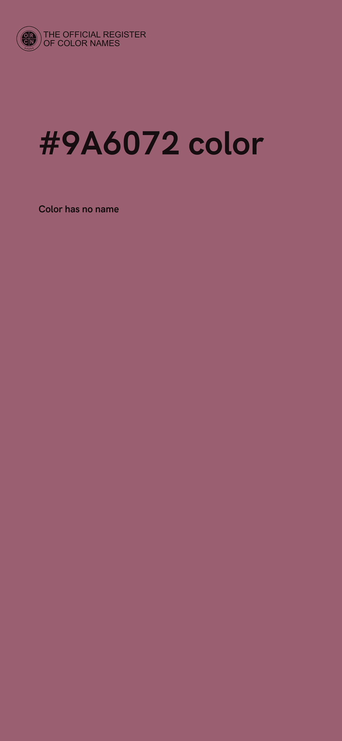 For printing in non digital world, #9A6072 is represented in CMYK as 0 Cyan, 23 Magenta, 16 Yellow, and 40 Black (Key) (C:0 M:23 Y:16 K:40).