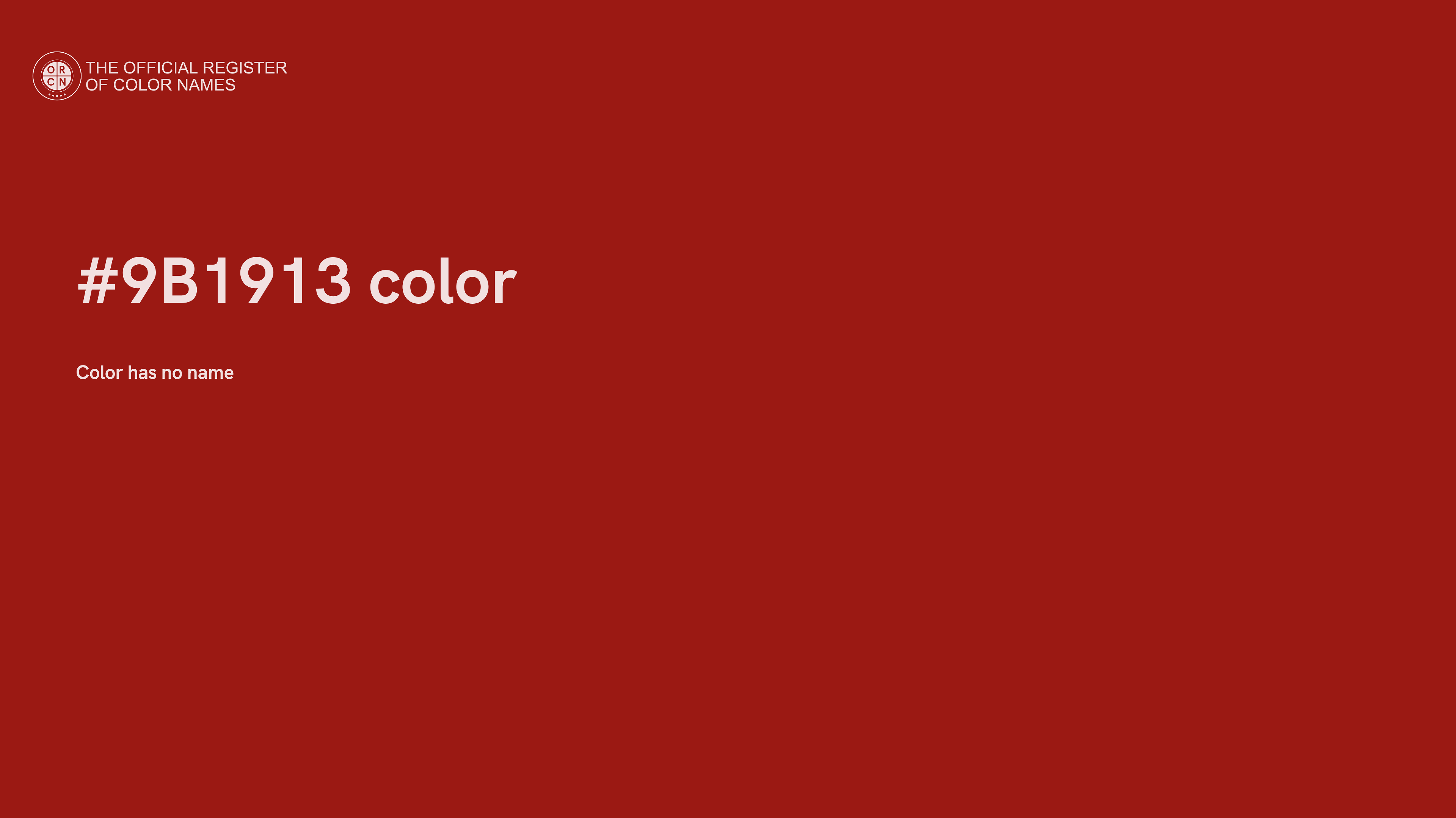 The digital color HEX #9B1913 belongs to the Red Color Family featuring High Saturation (Saturation Family) and Neutral (Brightness Family).