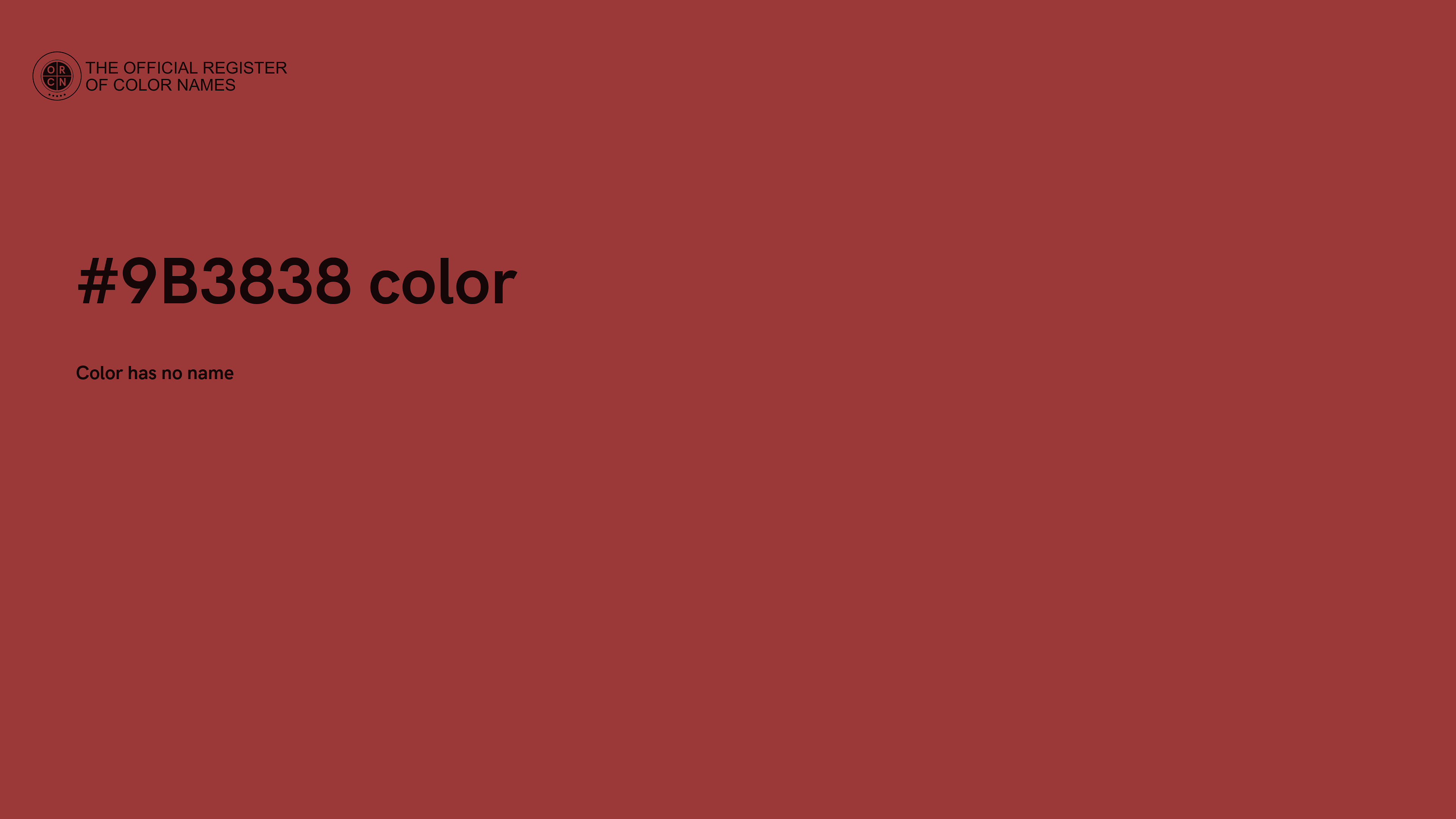 The digital color HEX #9B3838 belongs to the Red Color Family featuring Moderate Saturation (Saturation Family) and Light (Brightness Family).