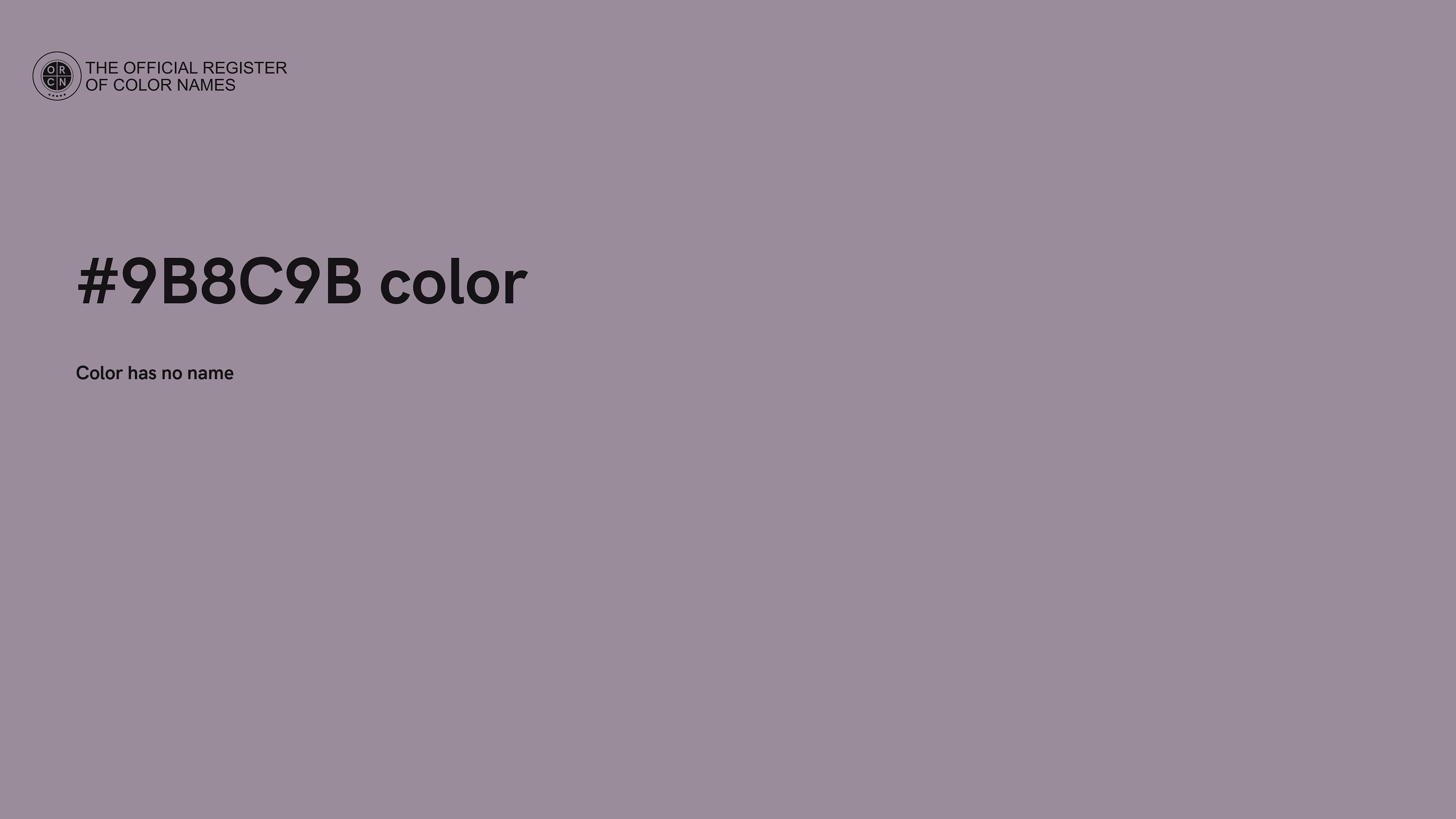 For printing in non digital world, #9B8C9B is represented in CMYK as 0 Cyan, 6 Magenta, 0 Yellow, and 39 Black (Key) (C:0 M:6 Y:0 K:39).