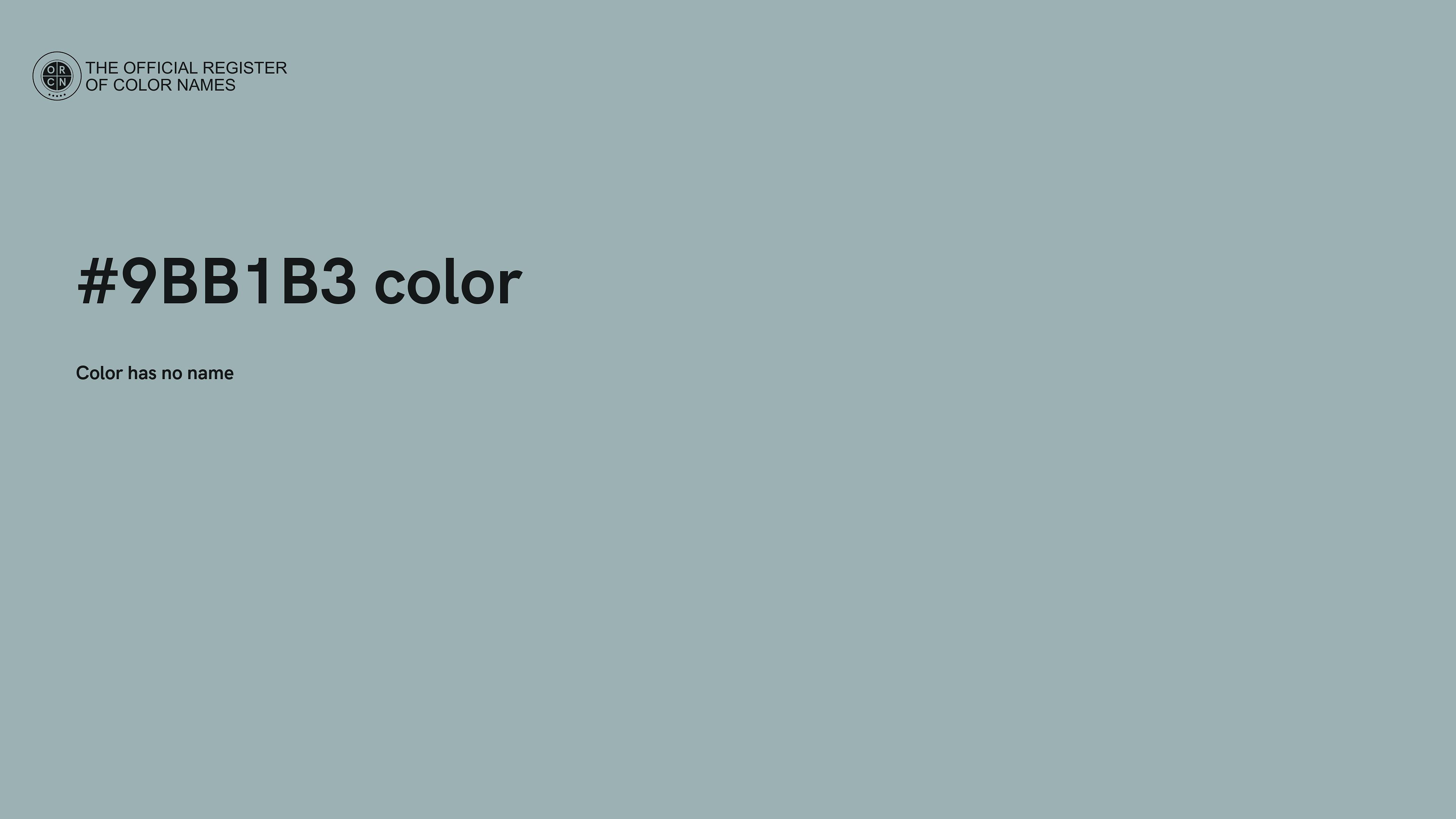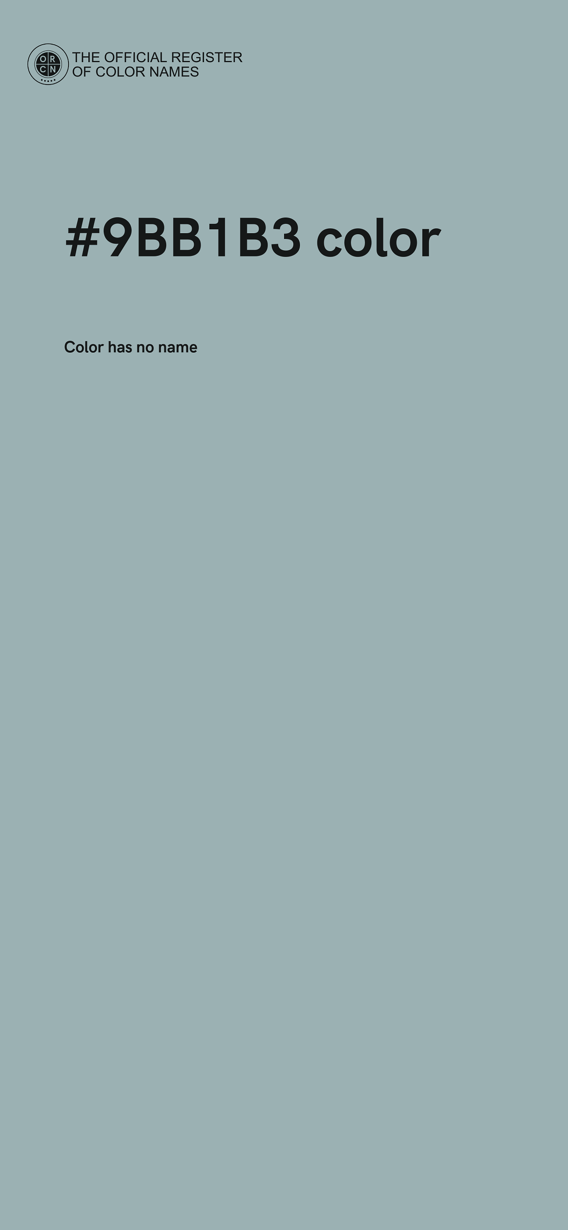 The digital color HEX #9BB1B3 belongs to the Cyan Color Family featuring Low Saturation (Saturation Family) and Very Light (Brightness Family).