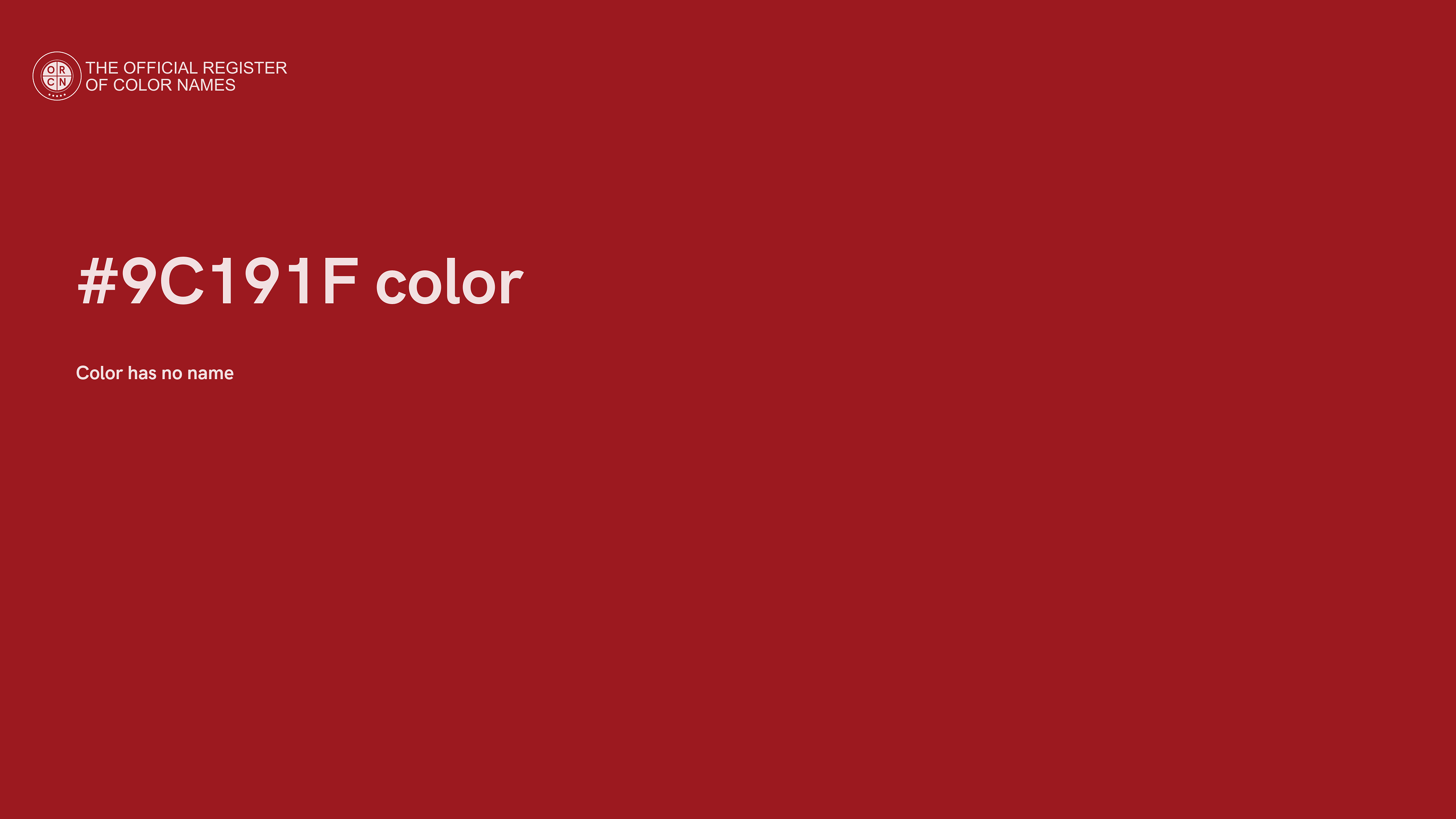 The digital color HEX #9C191F belongs to the Red Color Family featuring High Saturation (Saturation Family) and Neutral (Brightness Family).