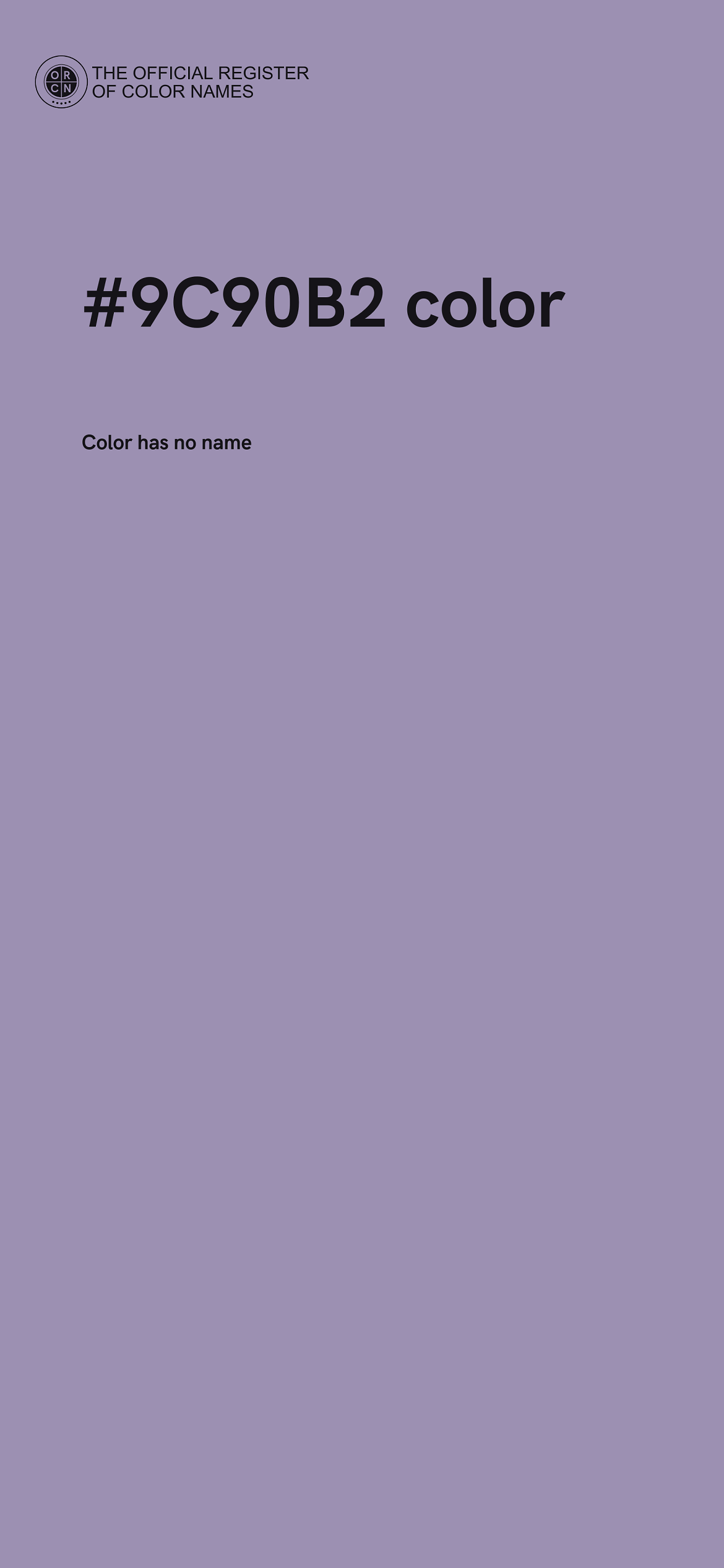 The digital color HEX #9C90B2 belongs to the Violet Color Family featuring Low Saturation (Saturation Family) and Very Light (Brightness Family).