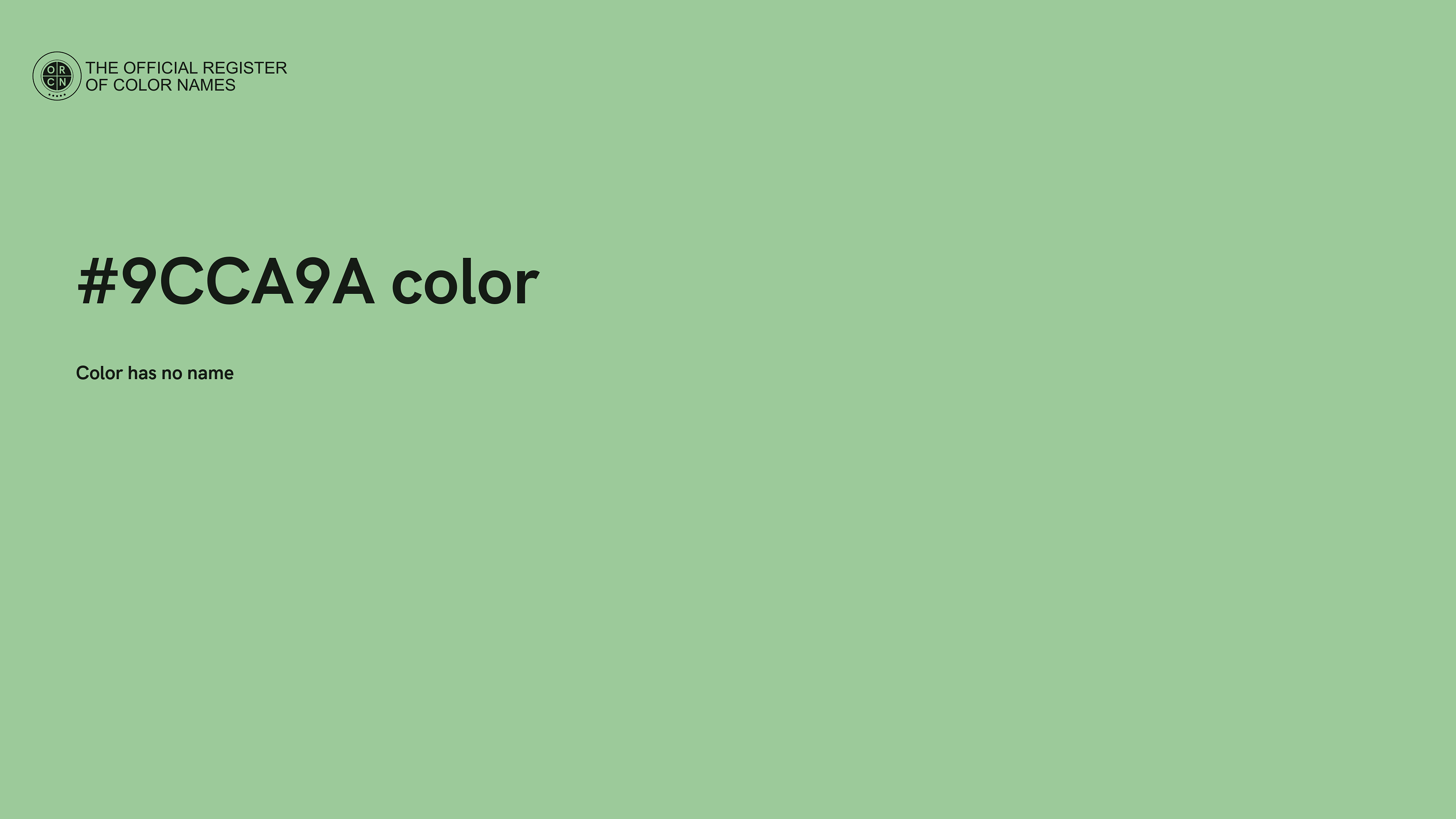 The digital color HEX #9CCA9A belongs to the Green Color Family featuring Mild Saturation (Saturation Family) and Very Light (Brightness Family).