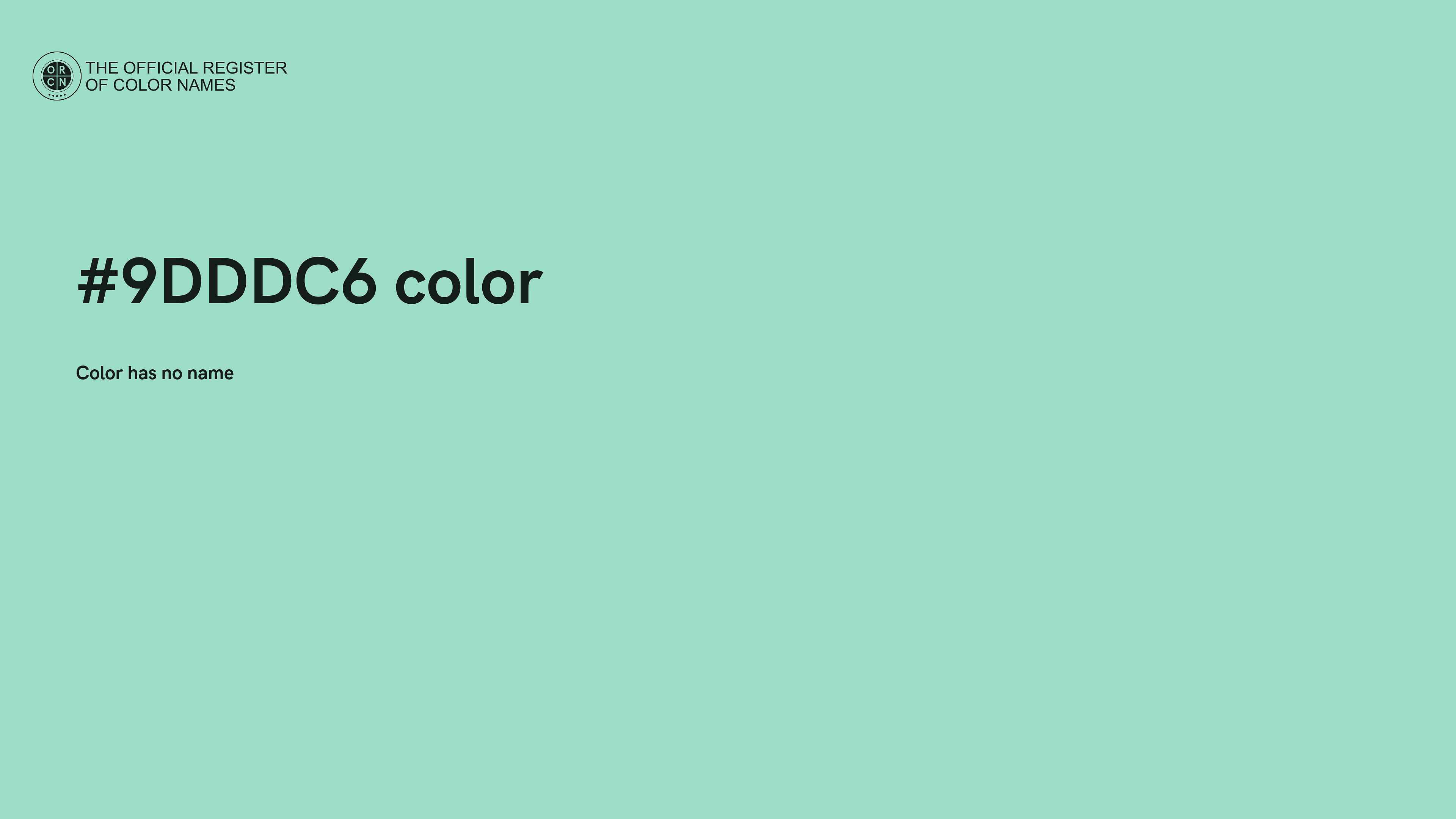 For printing in non digital world, #9DDDC6 is represented in CMYK as 25 Cyan, 0 Magenta, 9 Yellow, and 13 Black (Key) (C:25 M:0 Y:9 K:13).