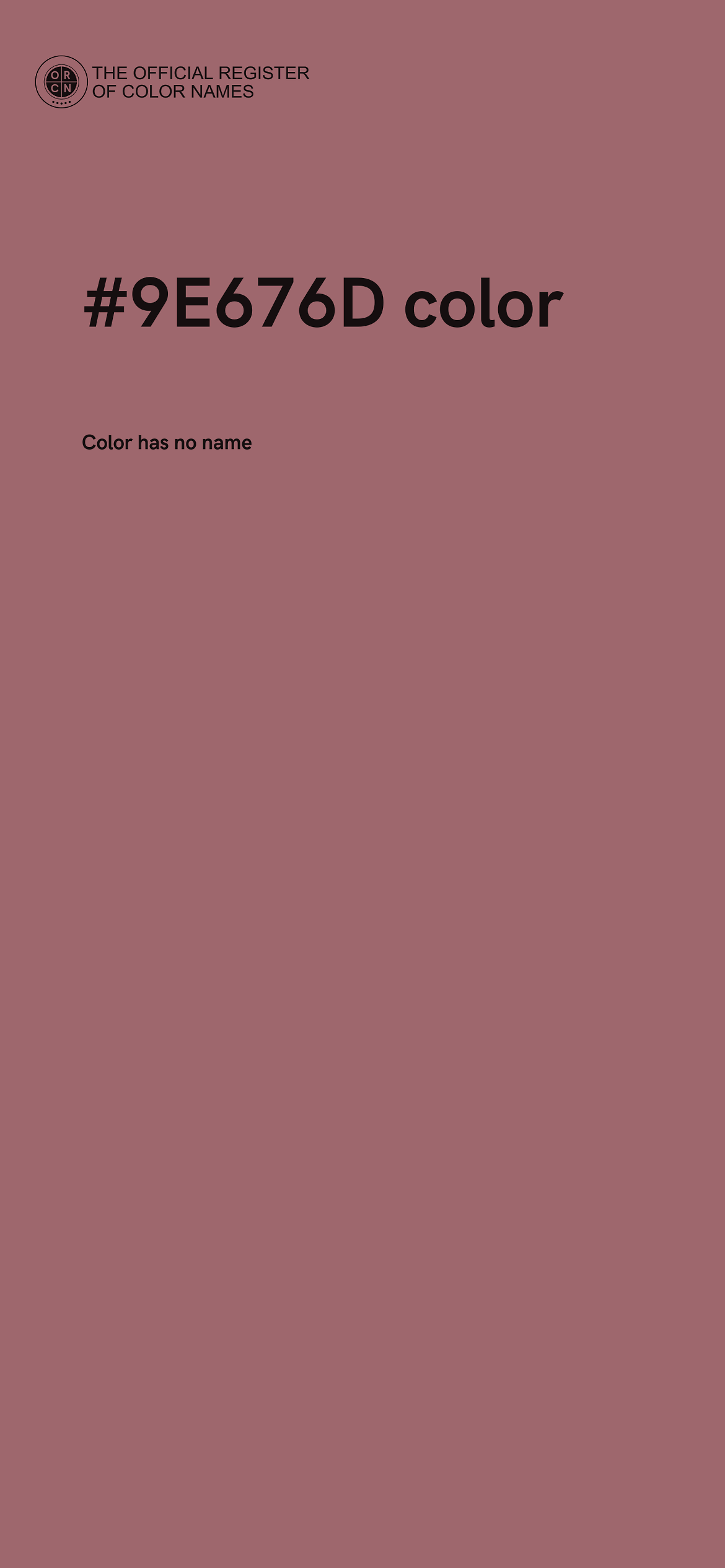 The digital color HEX #9E676D belongs to the Red Color Family featuring Low Saturation (Saturation Family) and Light (Brightness Family).