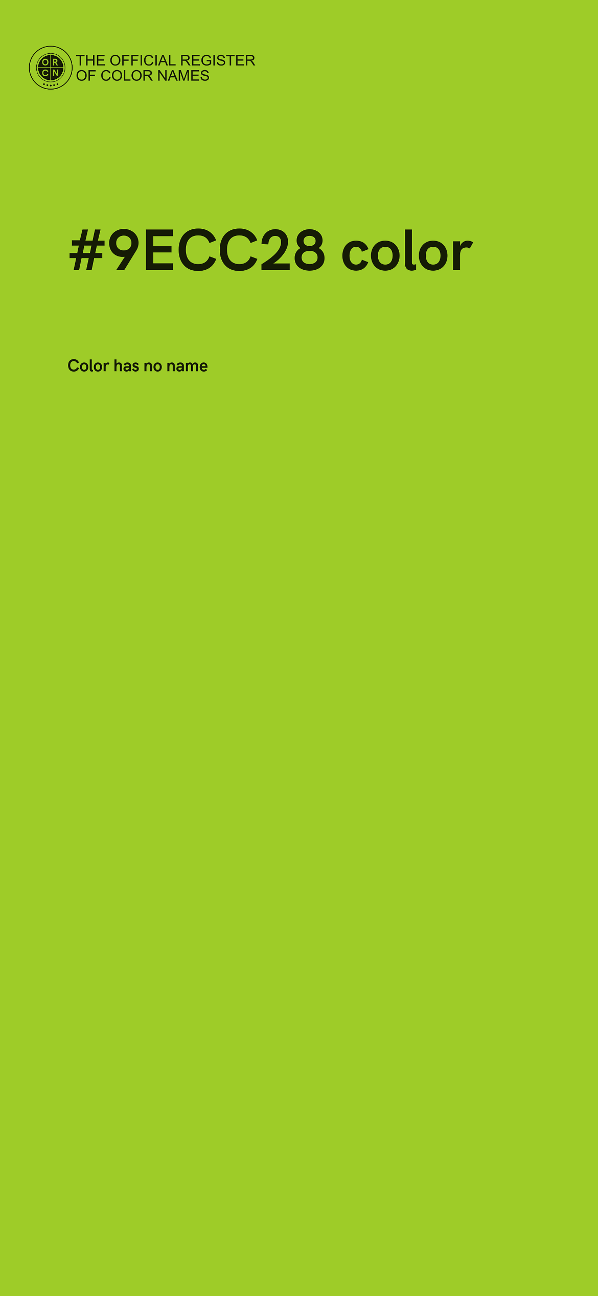 The digital color HEX #9ECC28 belongs to the Chartreuse Color Family featuring High Saturation (Saturation Family) and Light (Brightness Family).