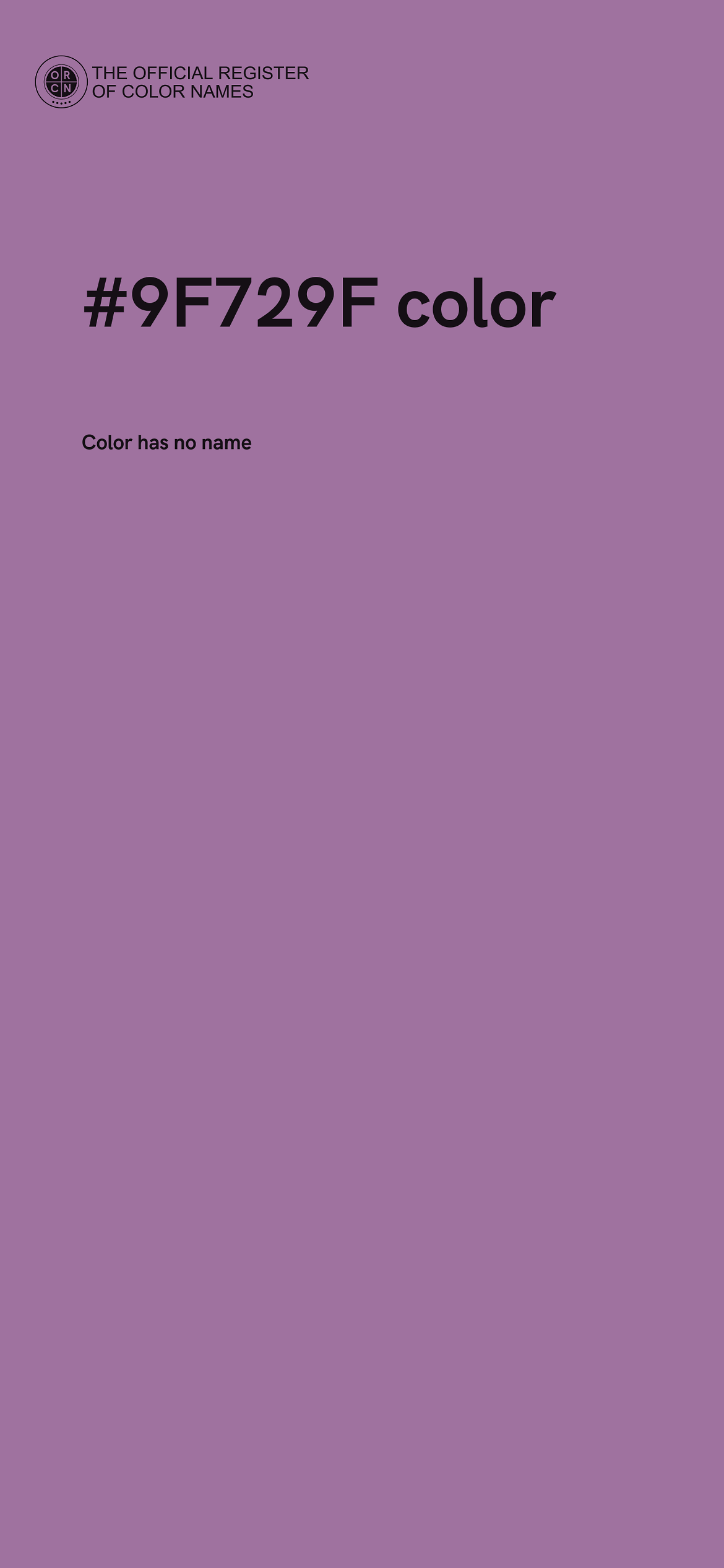 For printing in non digital world, #9F729F is represented in CMYK as 0 Cyan, 18 Magenta, 0 Yellow, and 38 Black (Key) (C:0 M:18 Y:0 K:38).