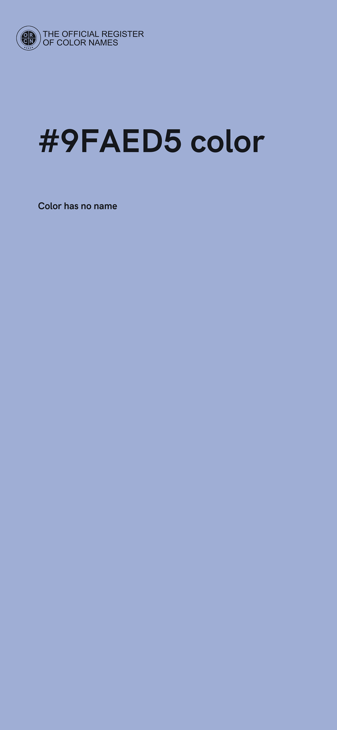 For printing in non digital world, #9FAED5 is represented in CMYK as 21 Cyan, 15 Magenta, 0 Yellow, and 16 Black (Key) (C:21 M:15 Y:0 K:16).