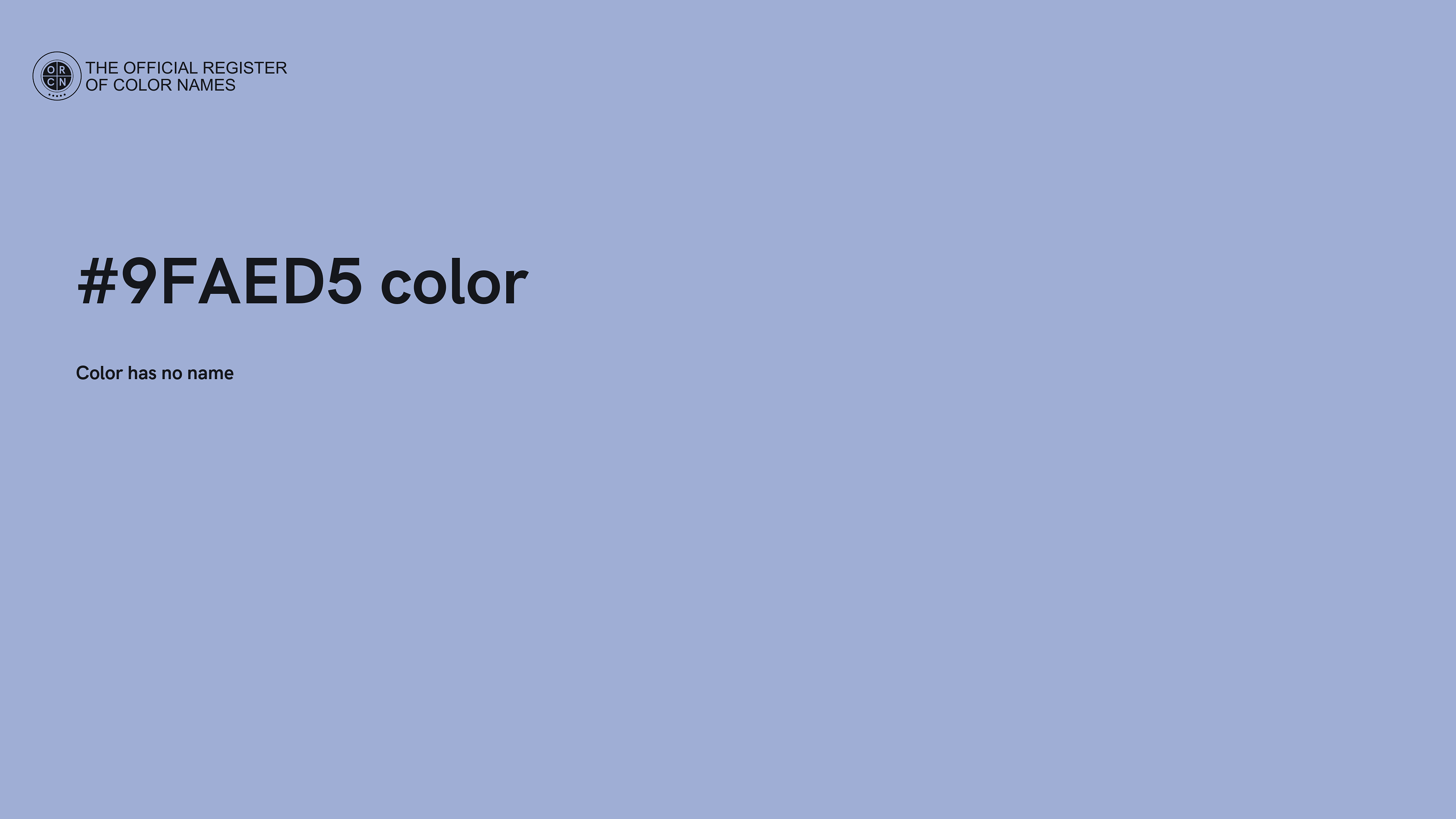 The digital color HEX #9FAED5 belongs to the Azure Color Family featuring Mild Saturation (Saturation Family) and Very Light (Brightness Family).
