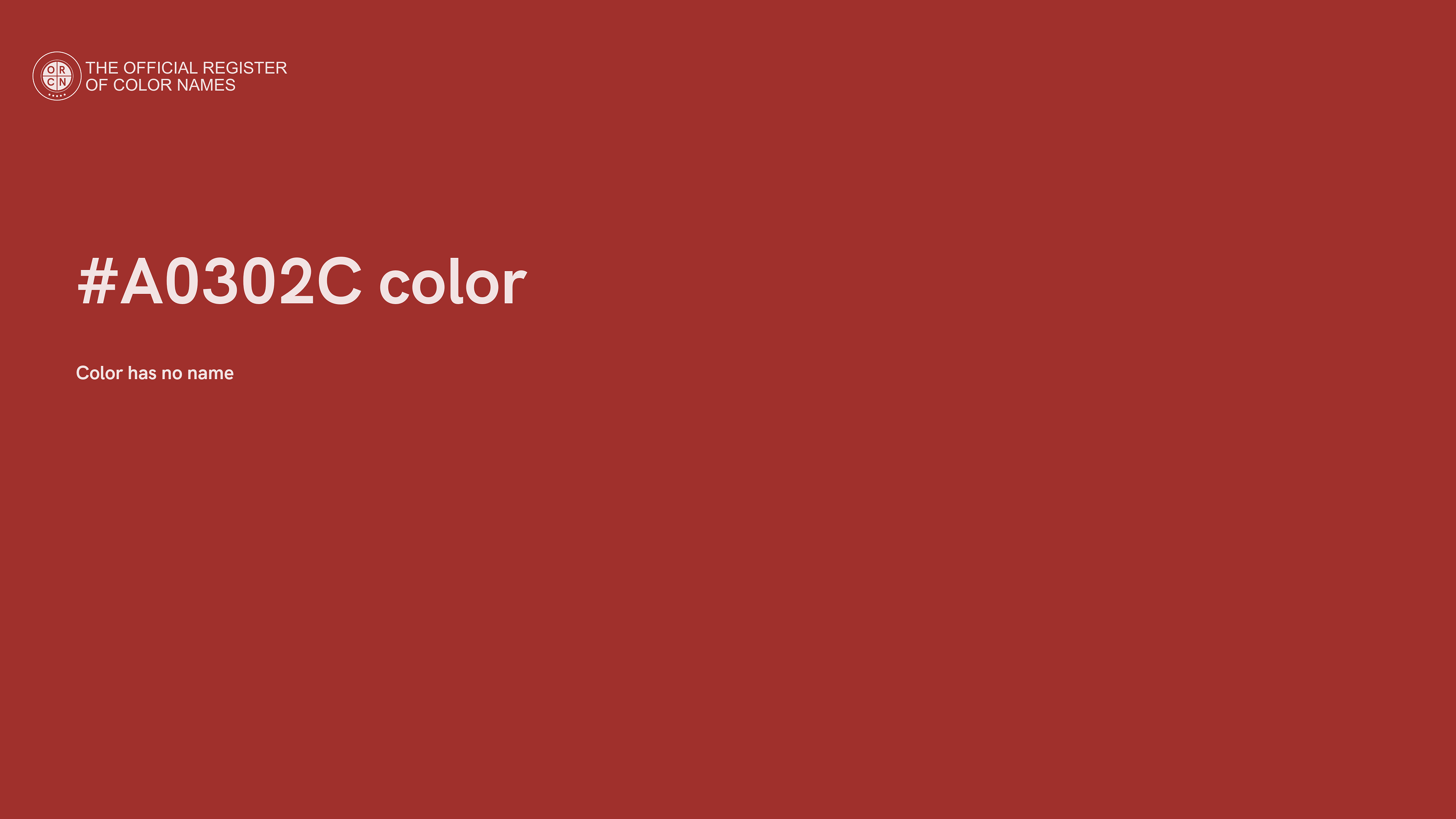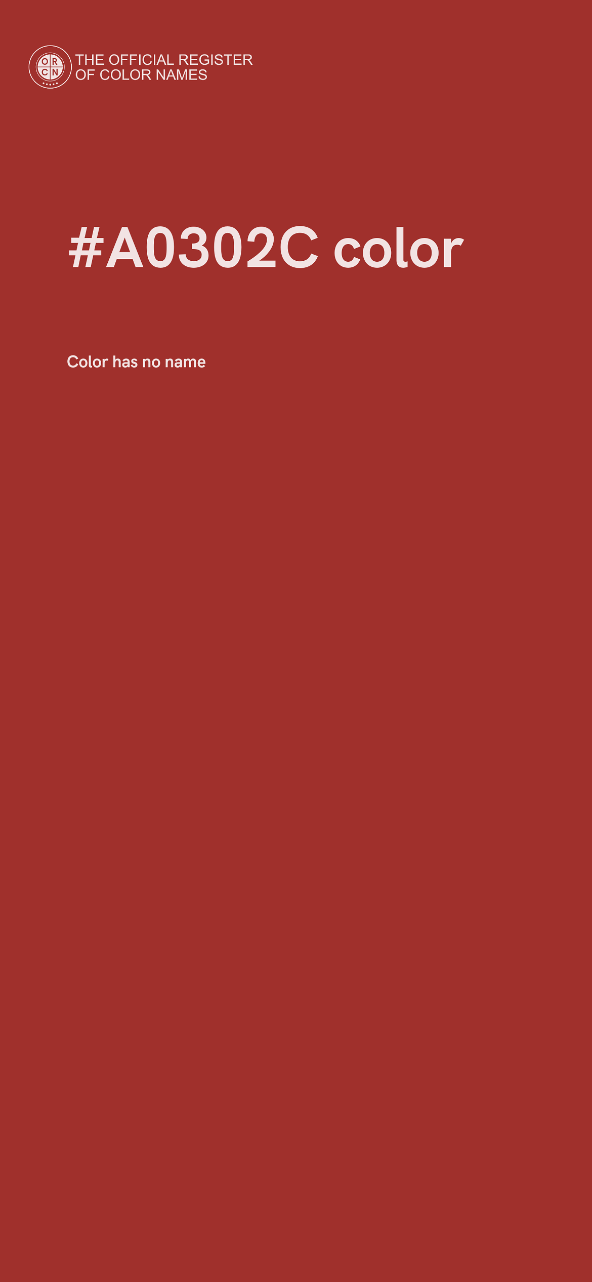 The digital color HEX #A0302C belongs to the Red Color Family featuring Moderate Saturation (Saturation Family) and Light (Brightness Family).