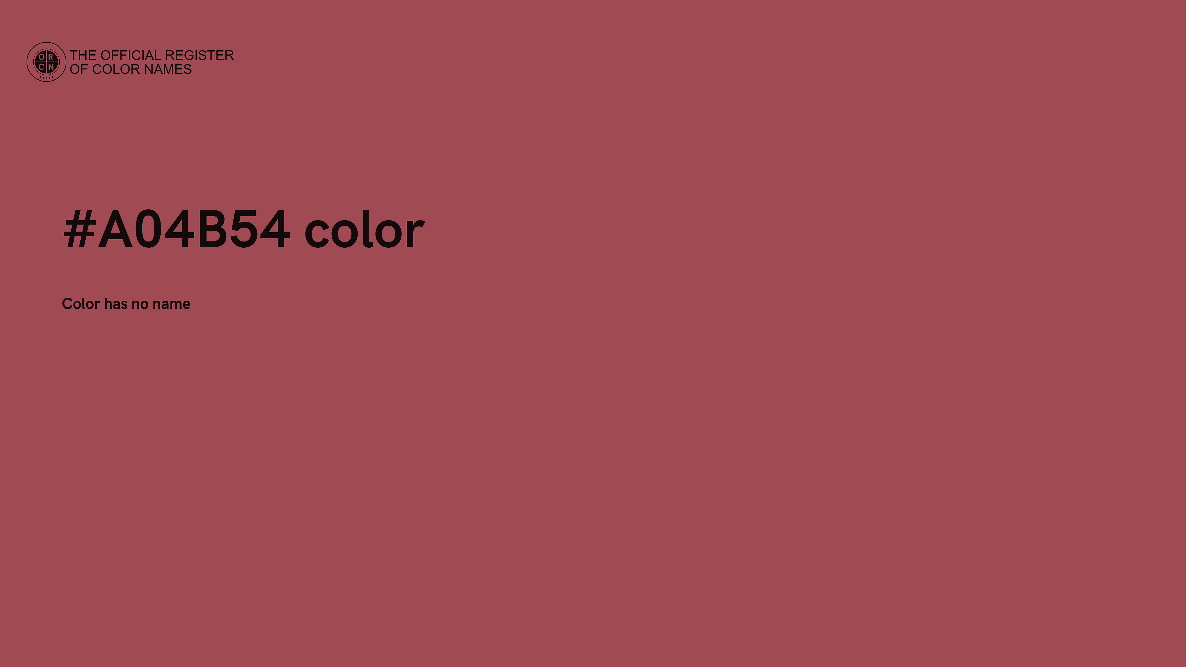 The digital color HEX #A04B54 belongs to the Red Color Family featuring Mild Saturation (Saturation Family) and Light (Brightness Family).