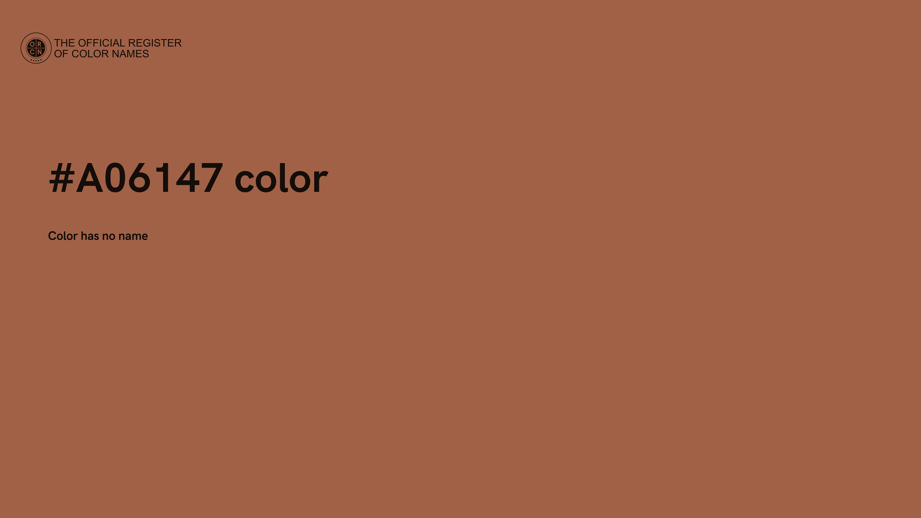 The digital color HEX #A06147 belongs to the Orange Color Family featuring Mild Saturation (Saturation Family) and Light (Brightness Family).