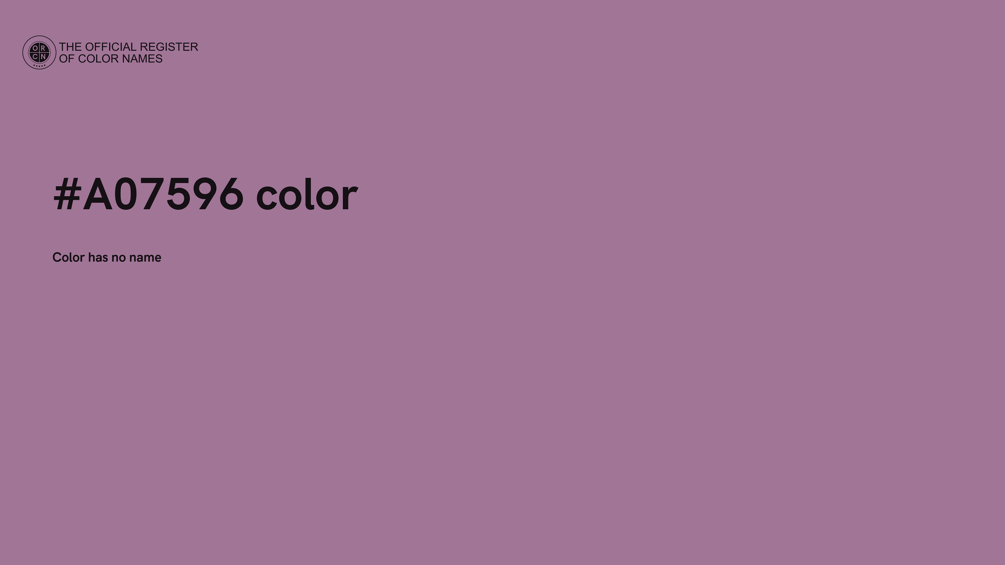 The digital color HEX #A07596 belongs to the Magenta Color Family featuring Low Saturation (Saturation Family) and Light (Brightness Family).