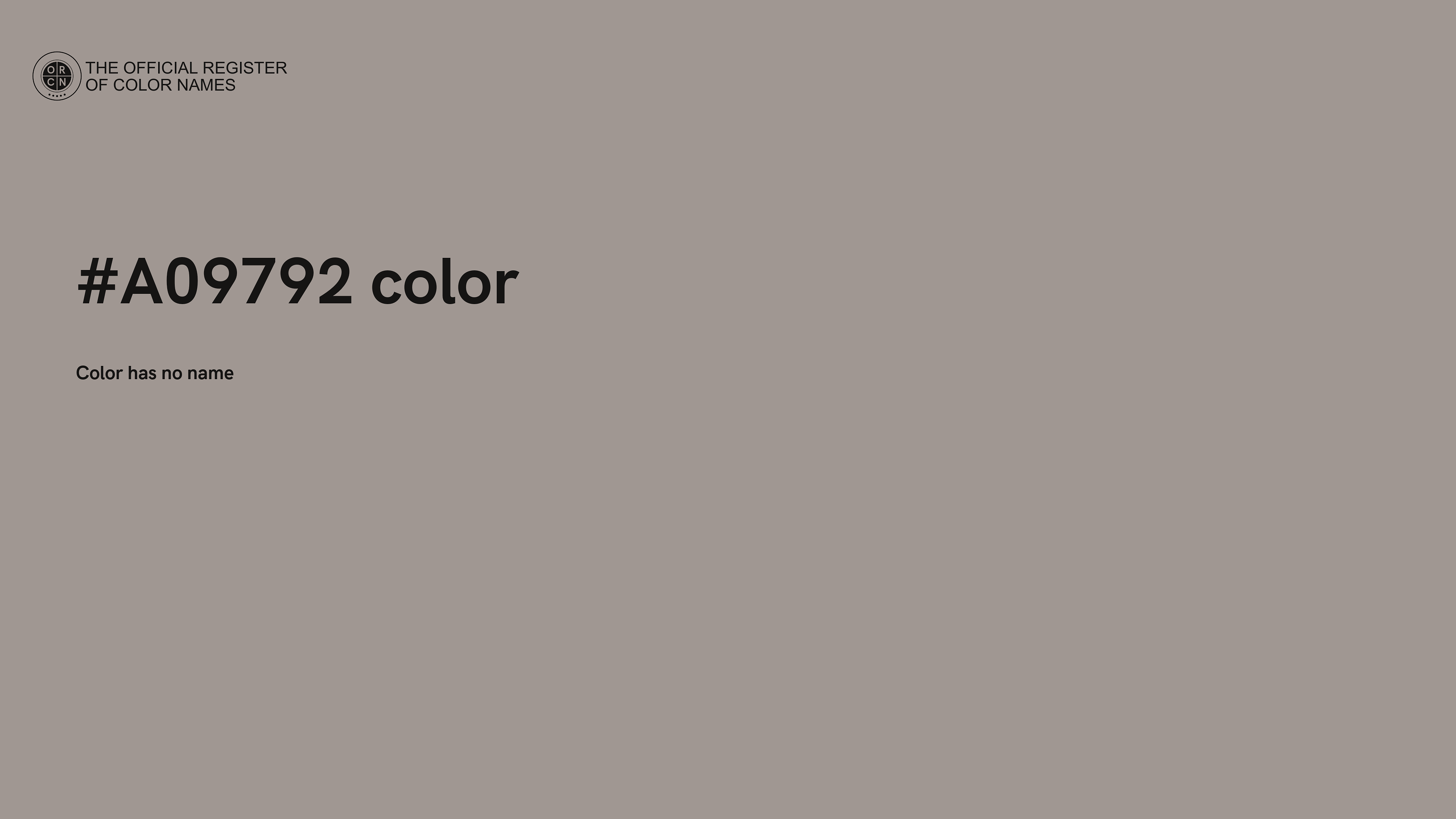 The digital color HEX #A09792 belongs to the Orange Color Family featuring Desaturated (Saturation Family) and Very Light (Brightness Family).