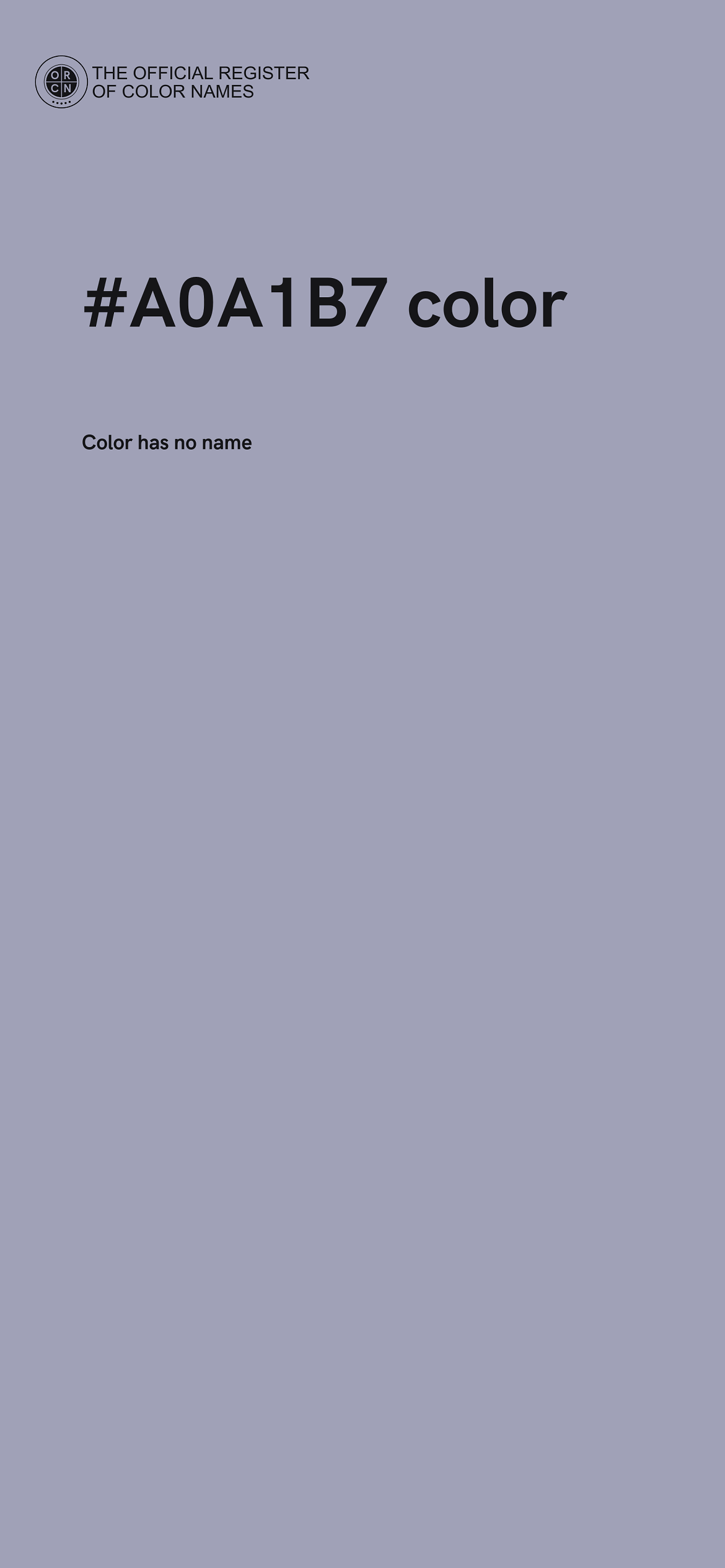 The digital color HEX #A0A1B7 belongs to the Blue Color Family featuring Low Saturation (Saturation Family) and Very Light (Brightness Family).