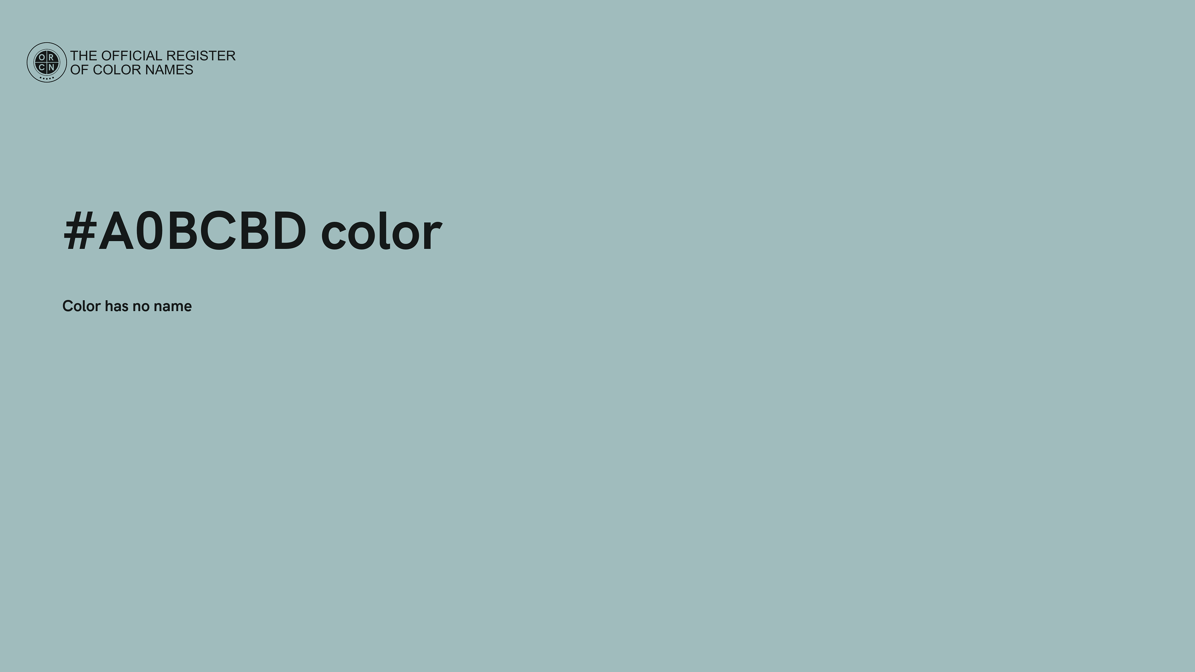The digital color HEX #A0BCBD belongs to the Cyan Color Family featuring Low Saturation (Saturation Family) and Very Light (Brightness Family).