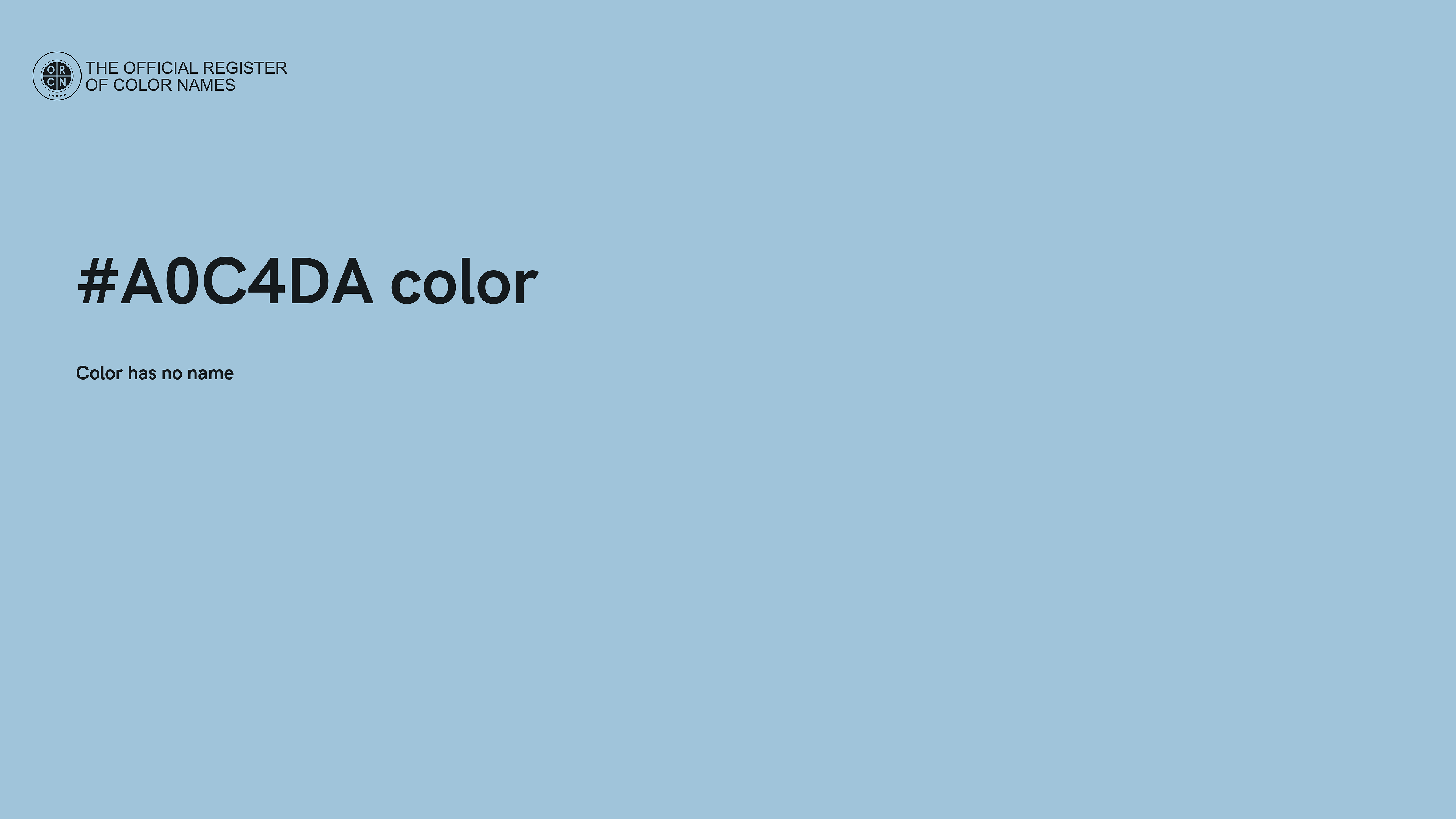The digital color HEX #A0C4DA belongs to the Azure Color Family featuring Moderate Saturation (Saturation Family) and Very Light (Brightness Family).