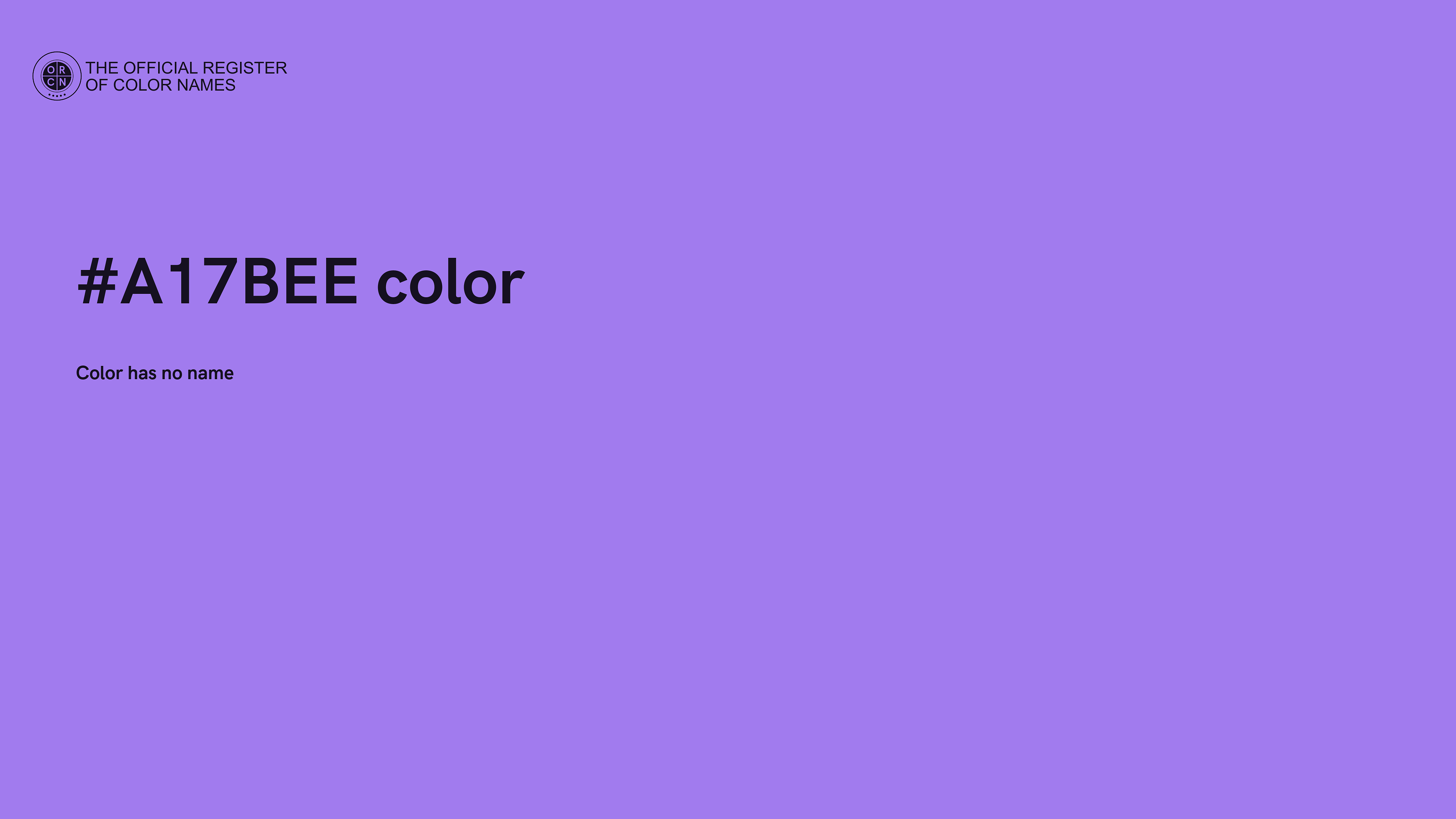 HEX code #A17BEE represent the color in hexadecimal format by combining three values – the amounts of Red, Green and Blue (RGB). Its RGB composition is 161, 123, 238 ( rgb(161, 123, 238) ), which breaks down into 63.1% of Red, 48.2% Green and 93.3% Blue.