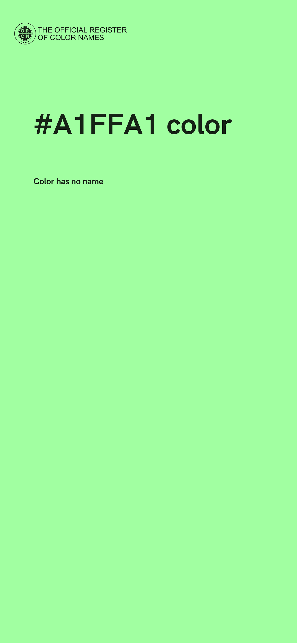 The digital color HEX #A1FFA1 belongs to the Green Color Family featuring Full Saturation (Saturation Family) and Very Light (Brightness Family).