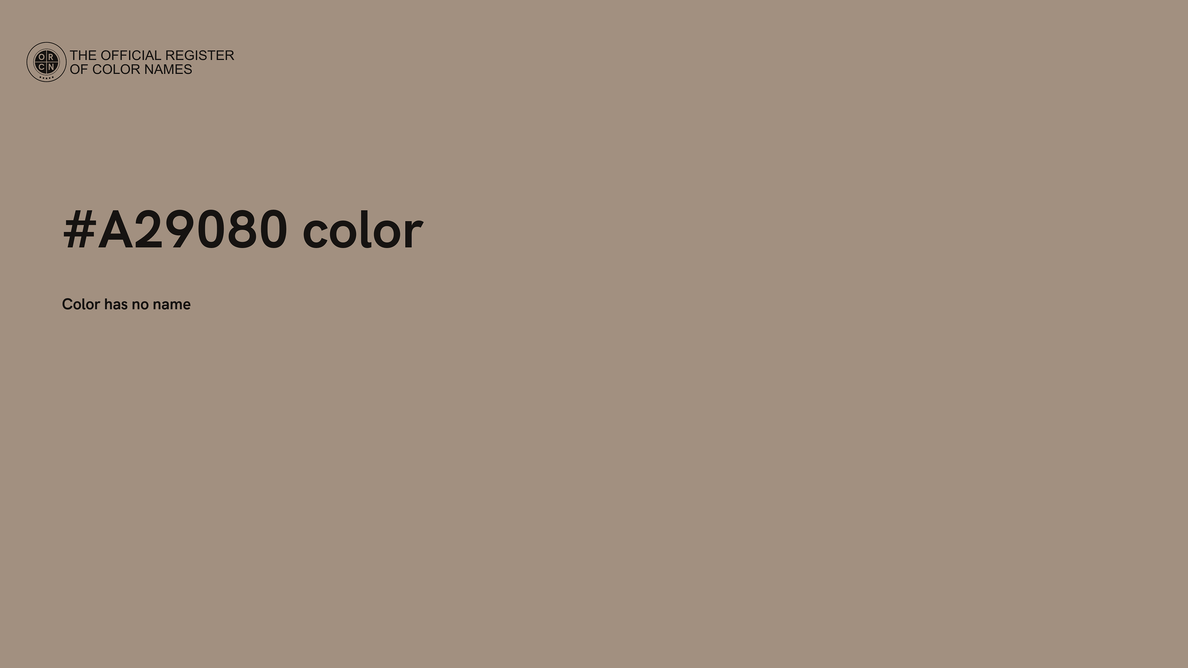 The digital color HEX #A29080 belongs to the Orange Color Family featuring Low Saturation (Saturation Family) and Light (Brightness Family).