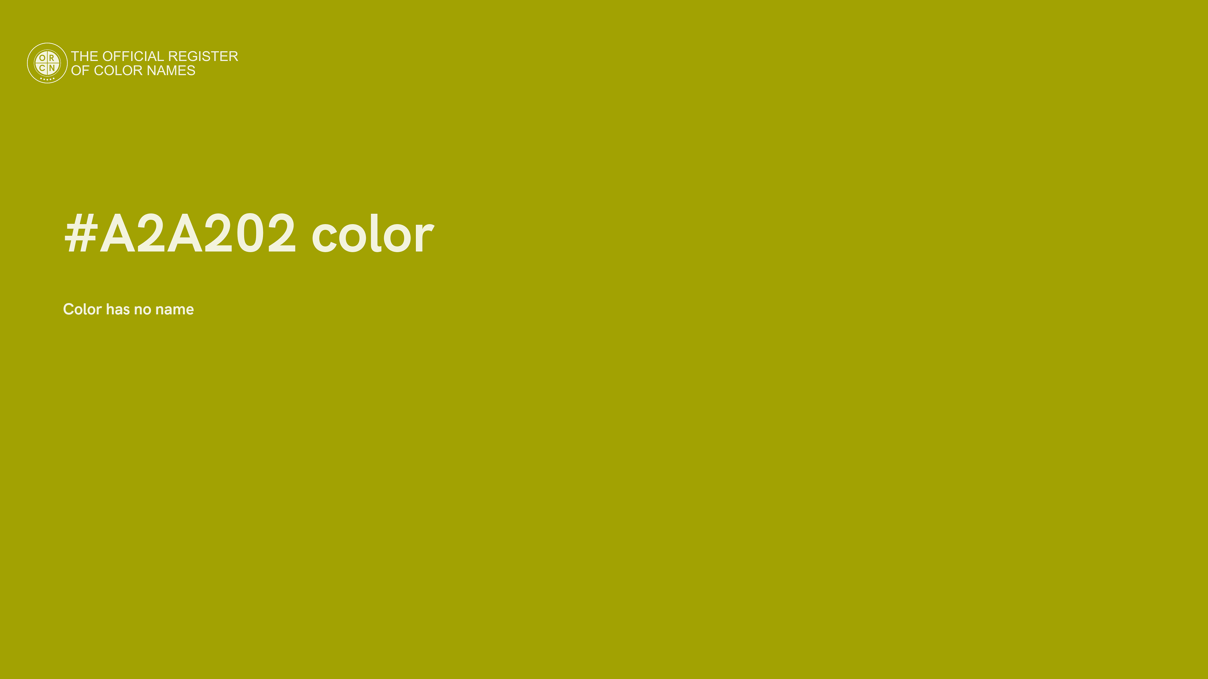 The digital color HEX #A2A202 belongs to the Yellow Color Family featuring Full Saturation (Saturation Family) and Neutral (Brightness Family).
