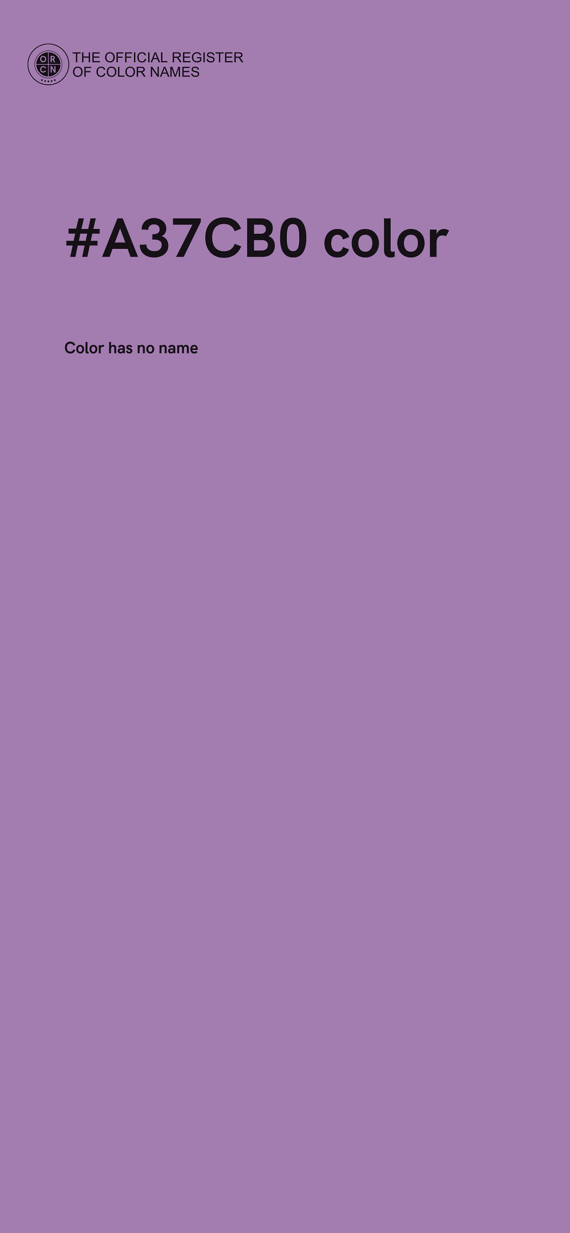 The digital color HEX #A37CB0 belongs to the Magenta Color Family featuring Mild Saturation (Saturation Family) and Light (Brightness Family).