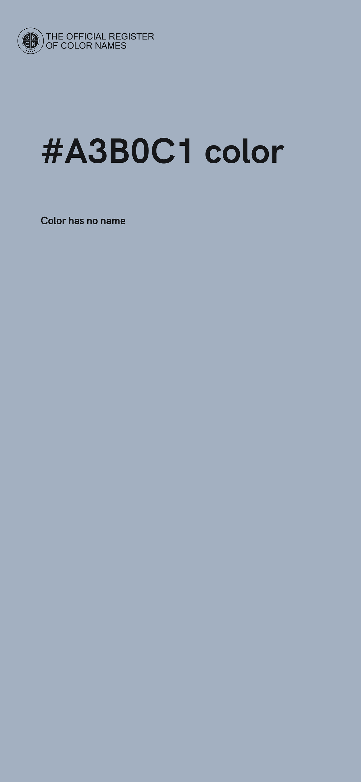 The digital color HEX #A3B0C1 belongs to the Azure Color Family featuring Low Saturation (Saturation Family) and Very Light (Brightness Family).